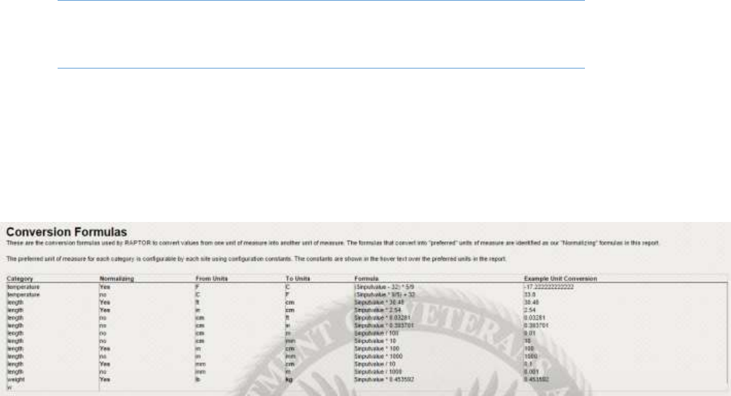 Conversion Formulas Report .................................................................................................................. 35