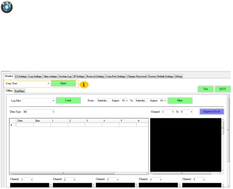 2. Select the COM Port number in the UI App as shown below and Click Open.