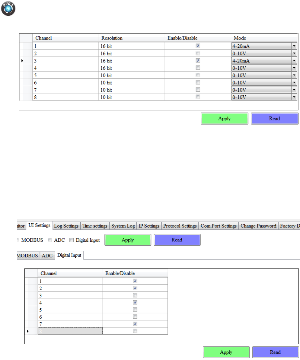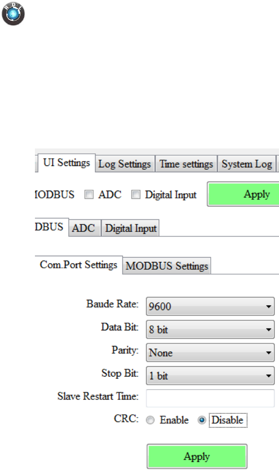 logging for selected channels in Modbus Setting Tab. Selecting Disable here will Disable