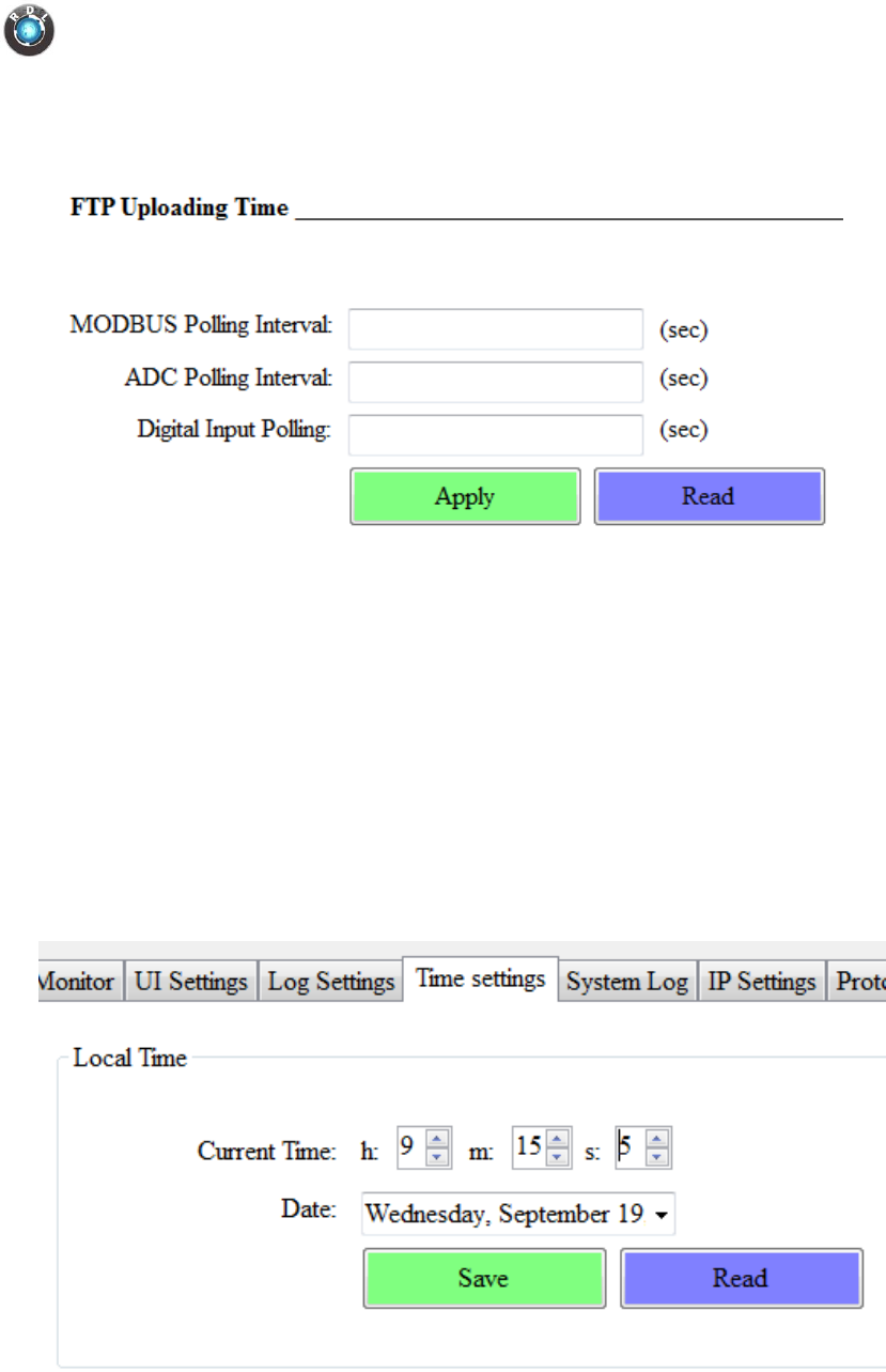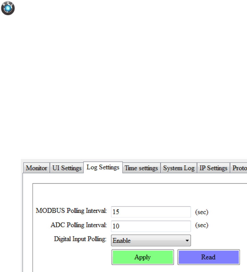 These settings will indicate how often logging of data needs to happen for Modbus/ADC/Digital