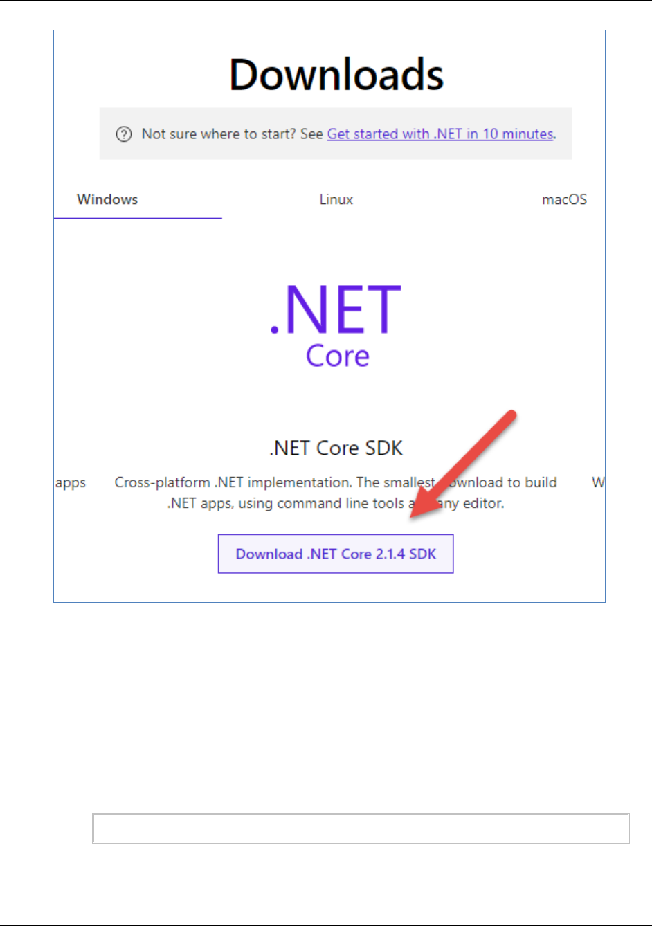 Download .NET Core x.x.x SDK as shown in the following screen shot.