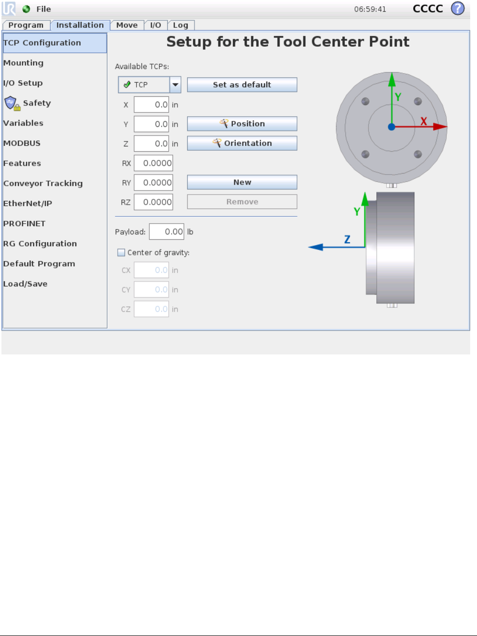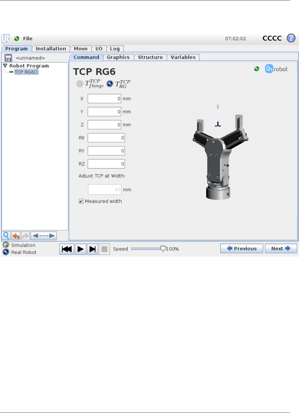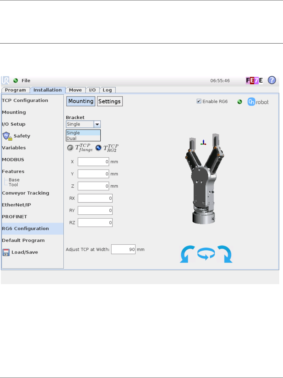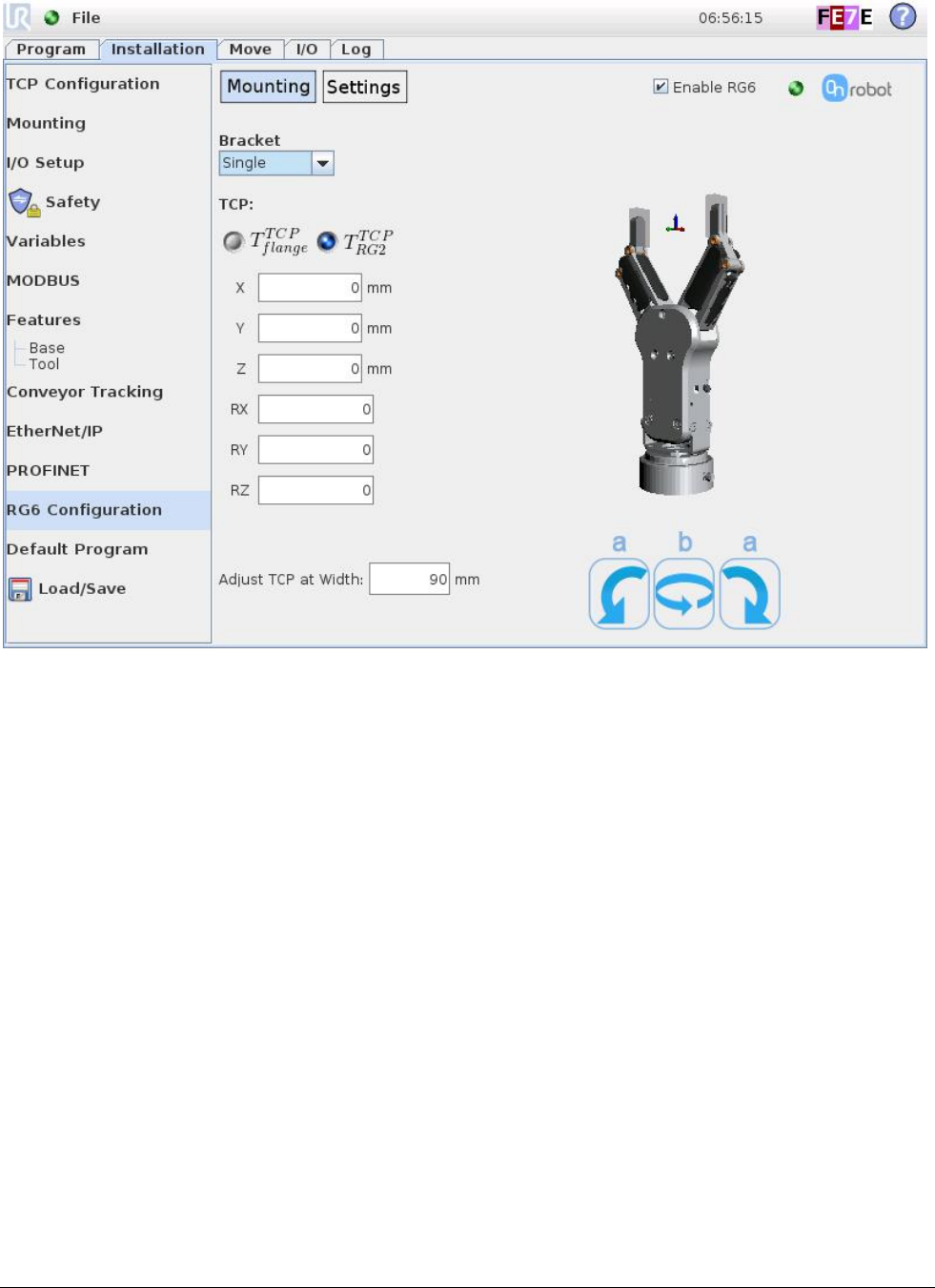 The RG6 TCP node can be inserted to set the current TCP for the robot. The view and the controls are similar