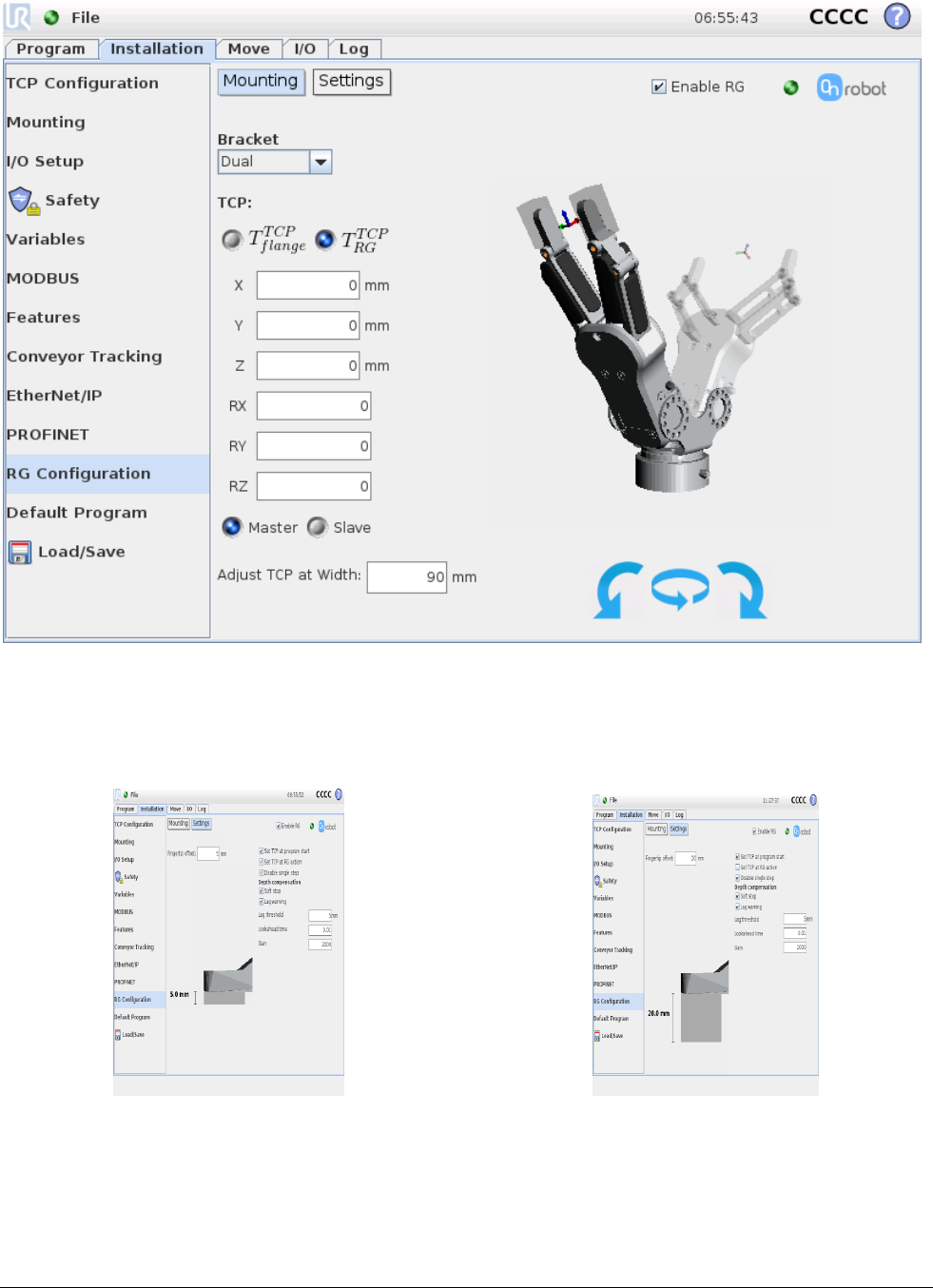 configuration of the Gripper is controlled in the robot software.