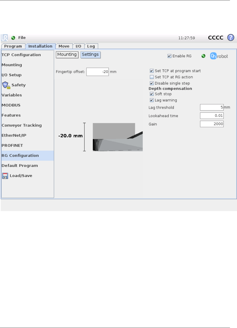 When the On Robot URCap is enabled, there will be a defined RG6 script function: