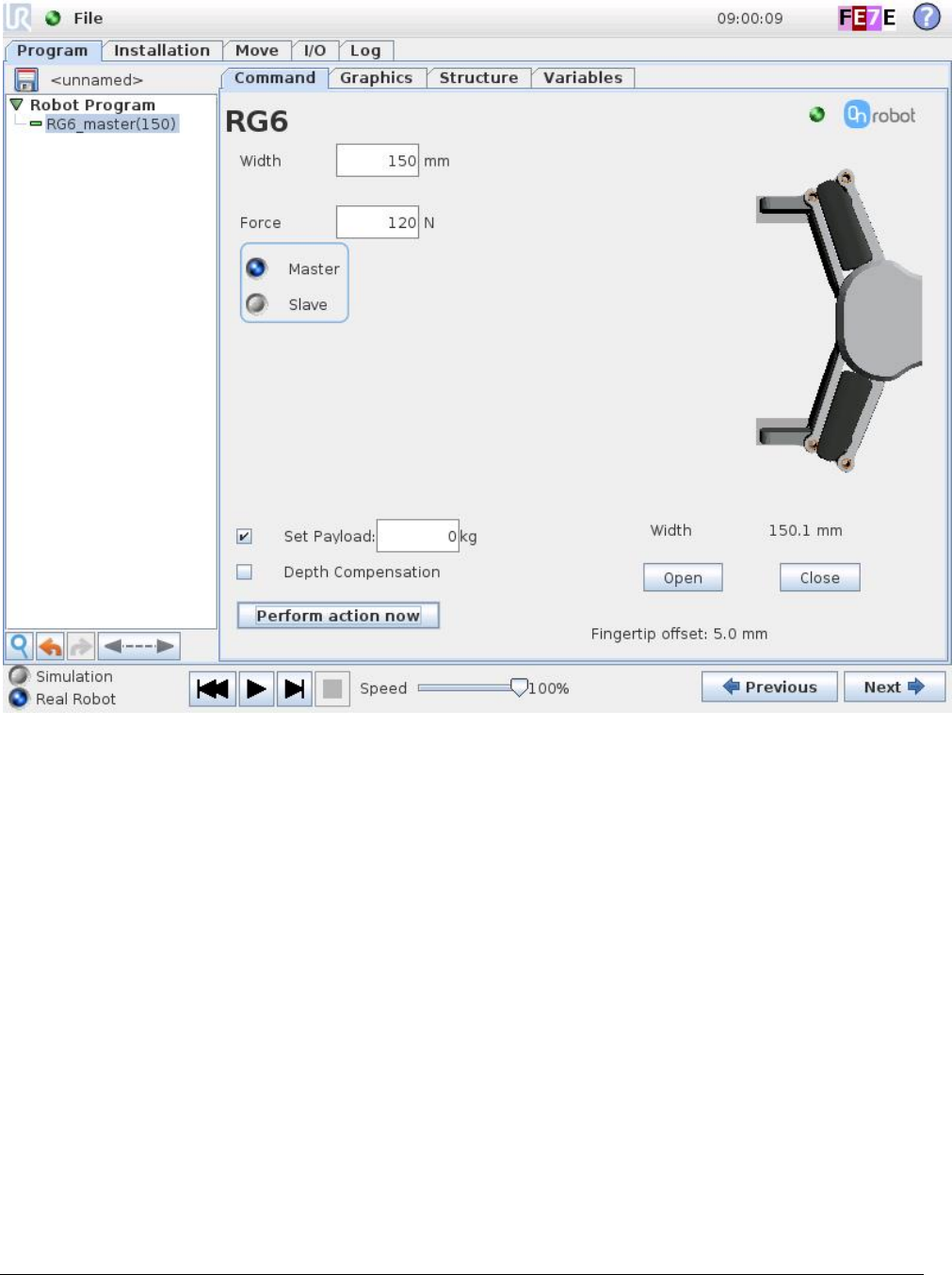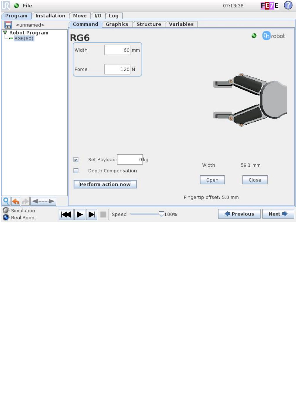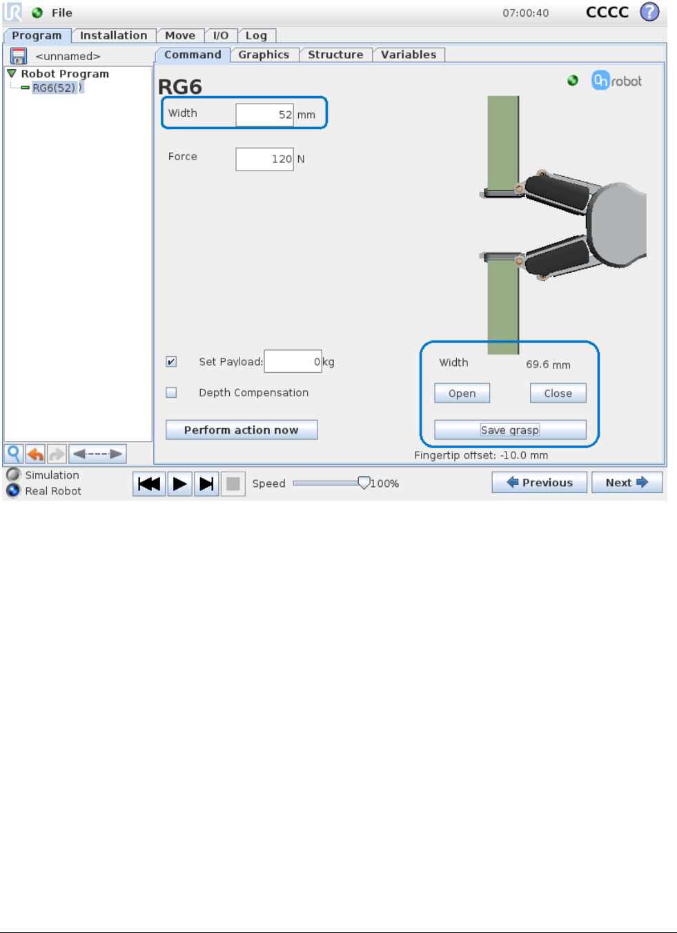 RG6(target_width=110, target_force=40, payload=0.0, set_payload=False, depth_compensation=False,