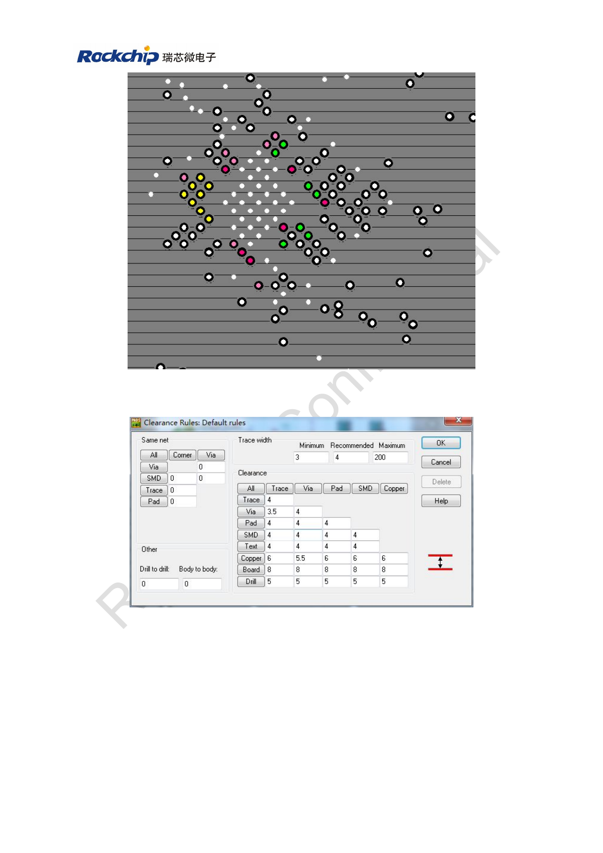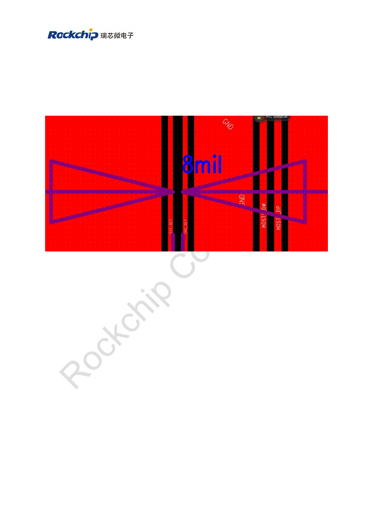 4:建议TMDS信号线宽为4mil(这样从RK3128到HDMI座子,线宽不会突变),线距为5mil,保证阻抗