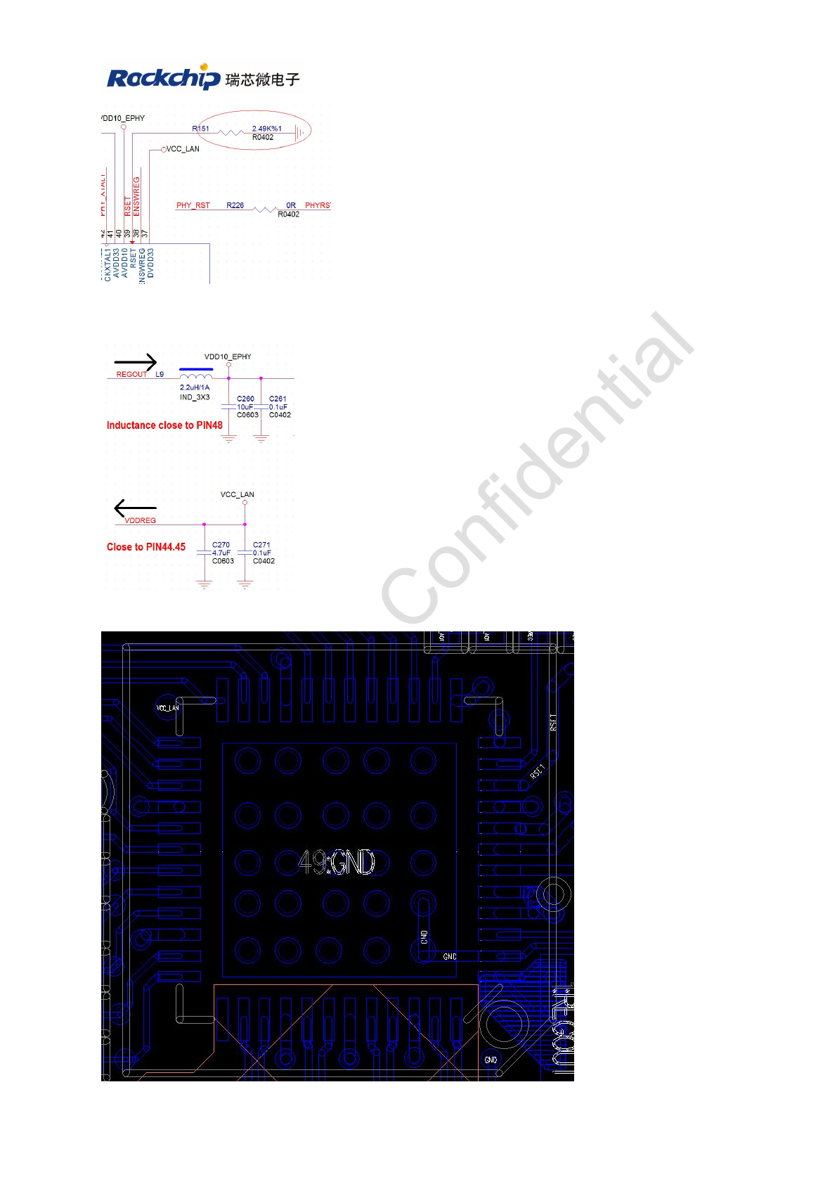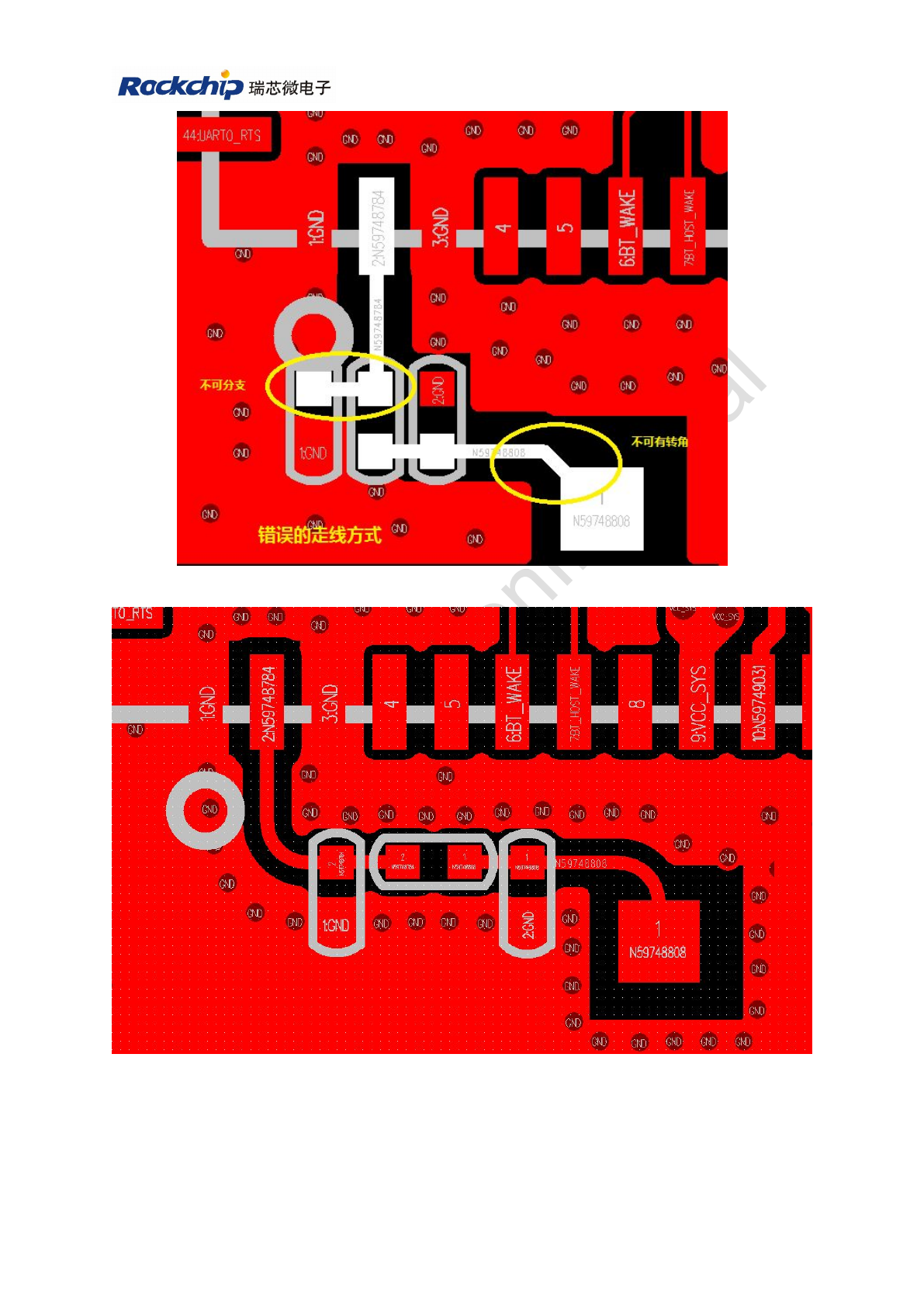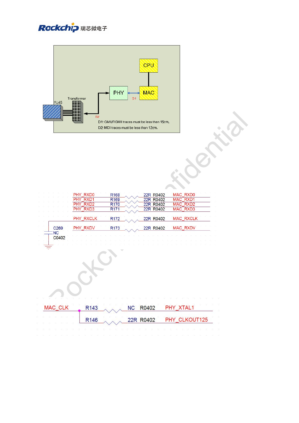 A)PHY越靠近RK3128,EMI效果会越好,即RGMII走线越短EMI效果越好,必须小于15cm。