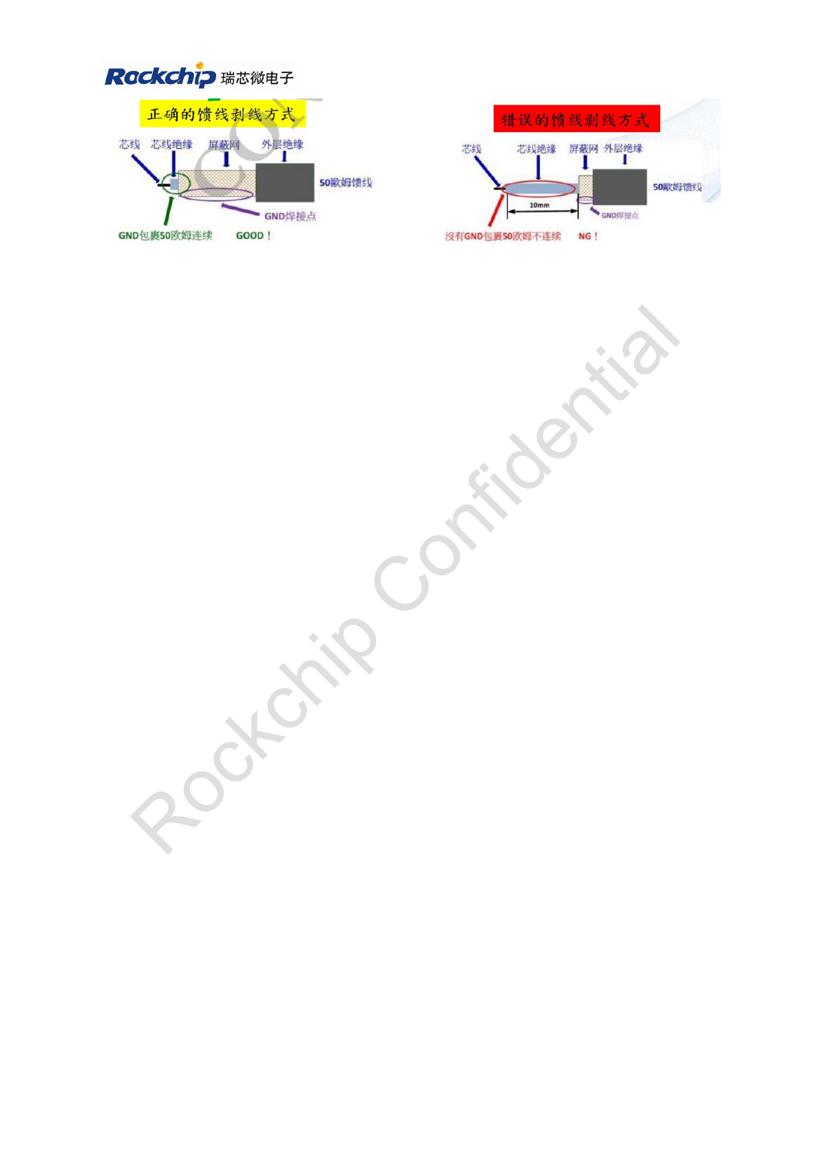 分。馈线在剥线时,切勿剥除过多的屏蔽网,导致50ohm阻抗不连续,如下图。