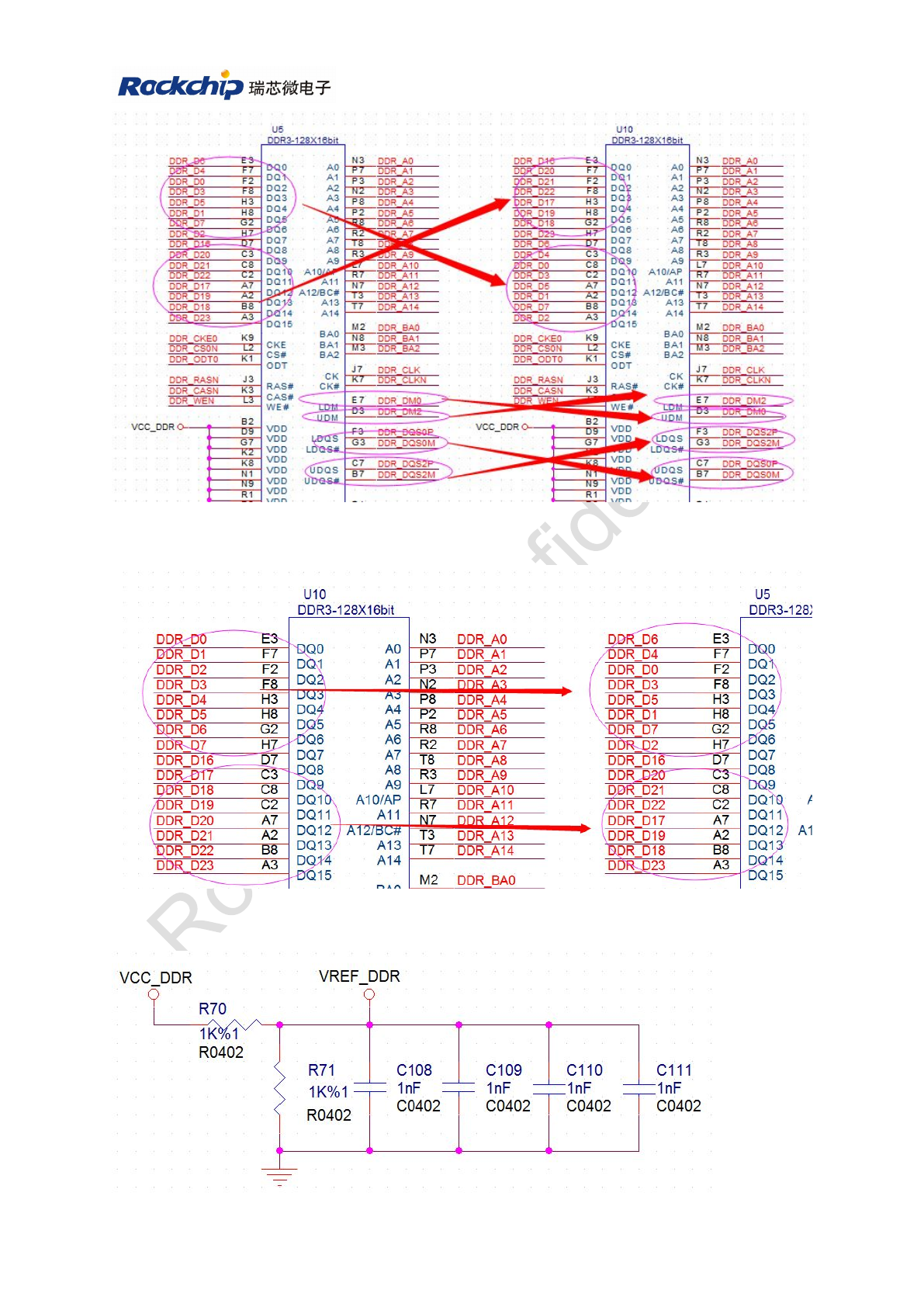 注:详细请参考RK发布的DDR核心模板PCB文件以及相对应的设计说明文件。