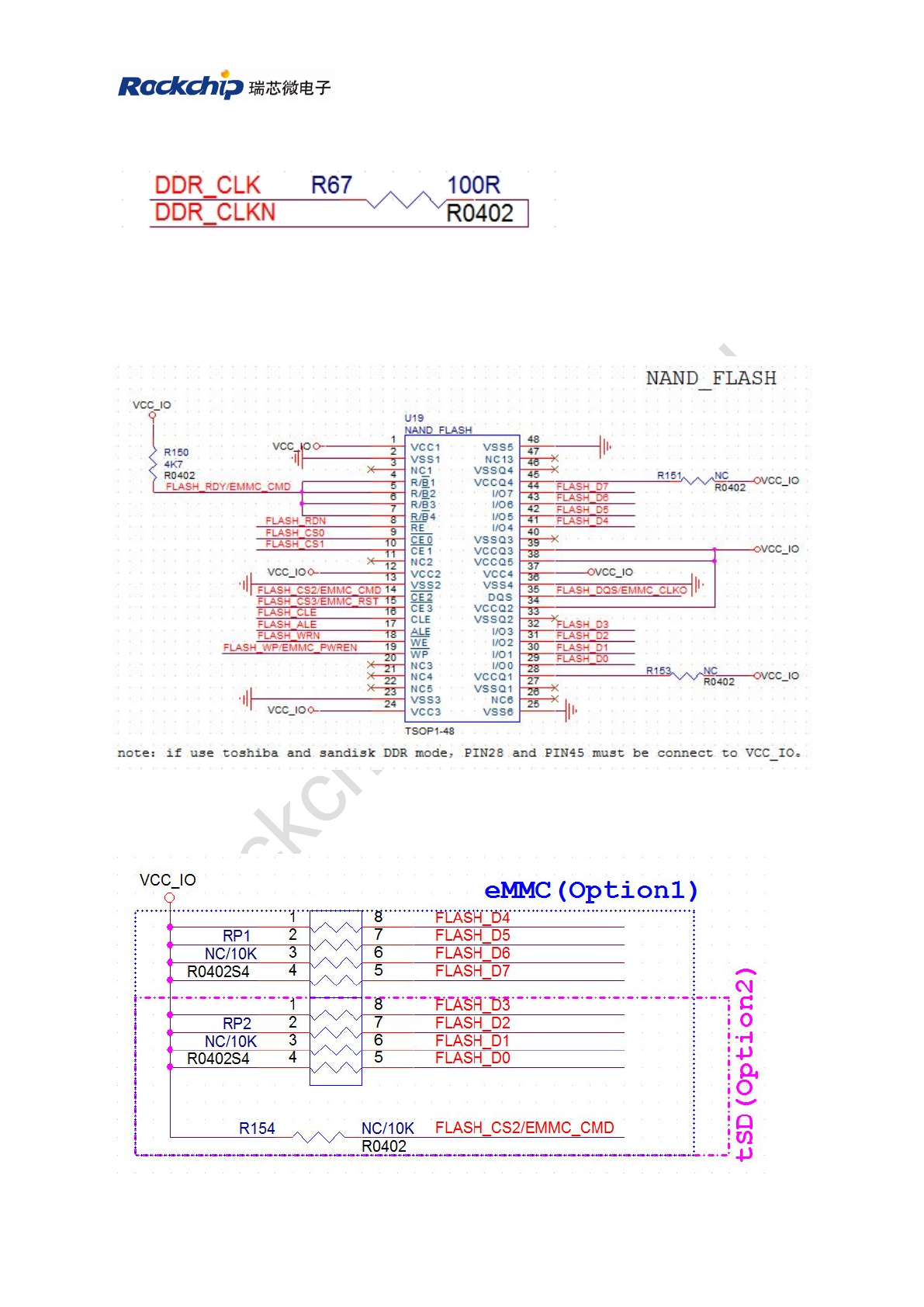 Nand Flash、eMMC Flash以及tSD可以通过双Layout实现物料的切换,Layout结构如下所示。