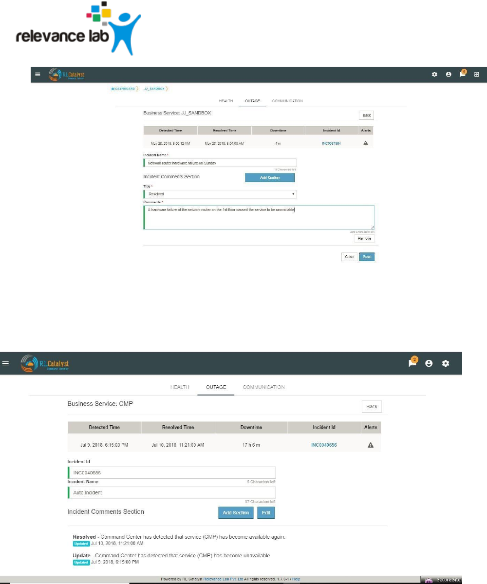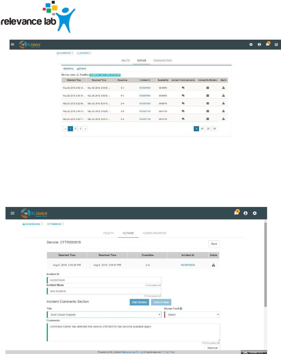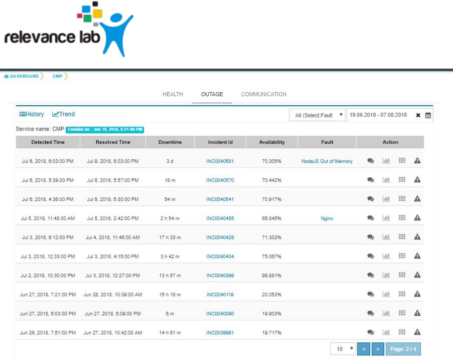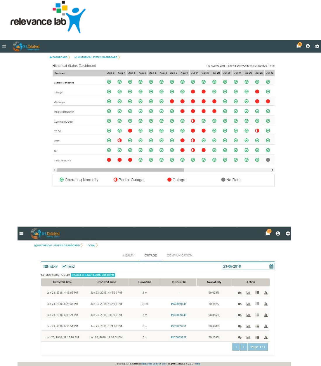 Clicking the link of Outage (Red) or Partial Outage available in the Historical Status Dashboard will take