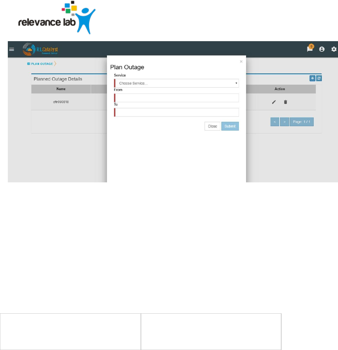 By clicking on link “Plan Outage” which is available under the menu, application will open “Planned Outage