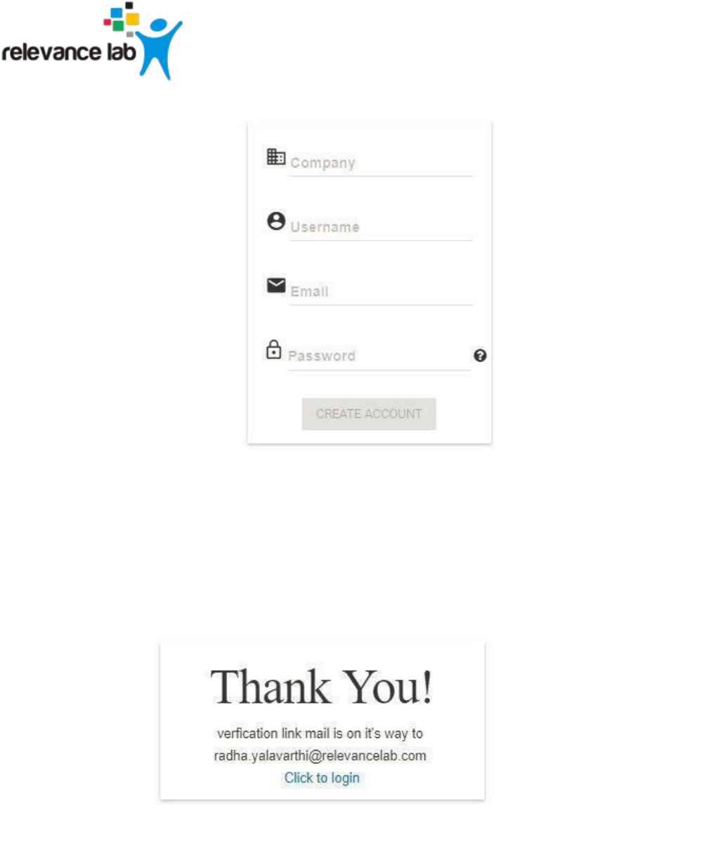 Password policy. Click on Create Account button. You will see a Thank You screen confirming