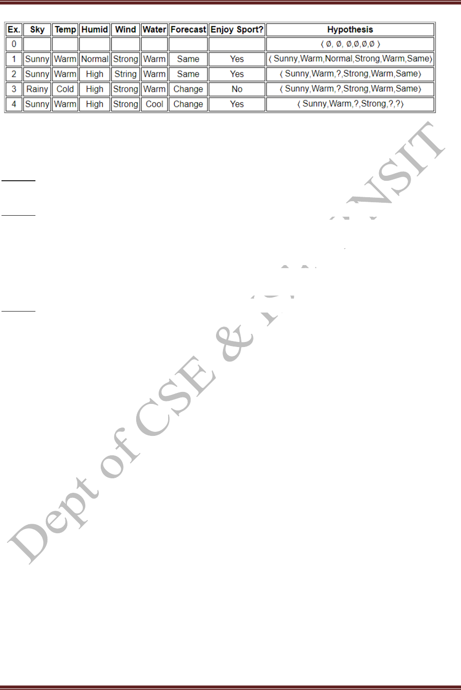 1. Implement and demonstrate the FIND-S algorithm for finding the most specific hypothesis based
