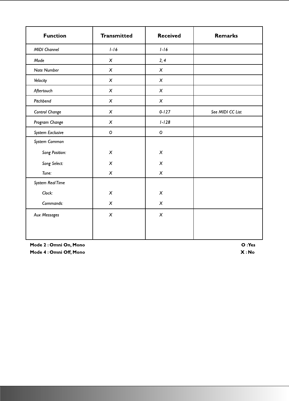 MIDI Implementation