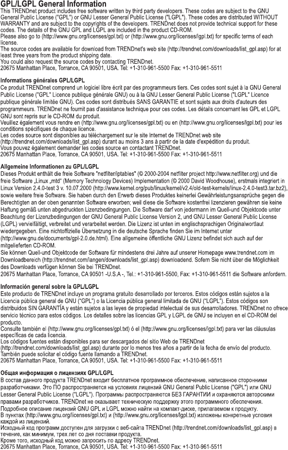 contact TRENDnet's Technical Support Department.