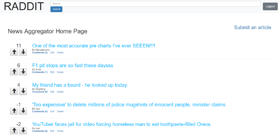 Users who are registered for the RADDIT News Aggregator App can login by: