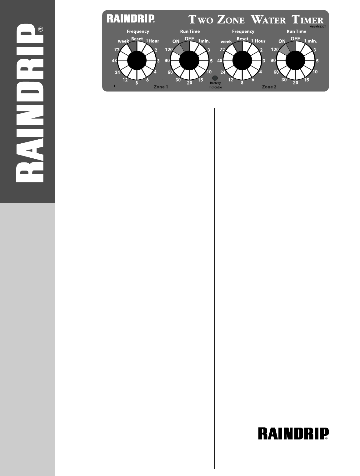 Your Raindrip Two Zone Timer is equipped with two