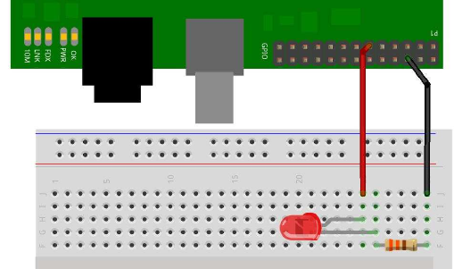 b) Programmierung: 1 Pin (pin 0) als Output für 1 LED 59