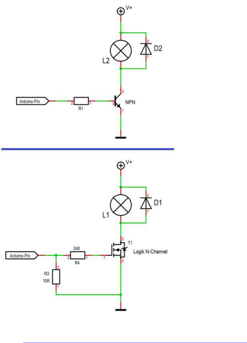 a) Verkabelung von Pins als Output mit pwm für LEDs und für stärkere Lasten 57