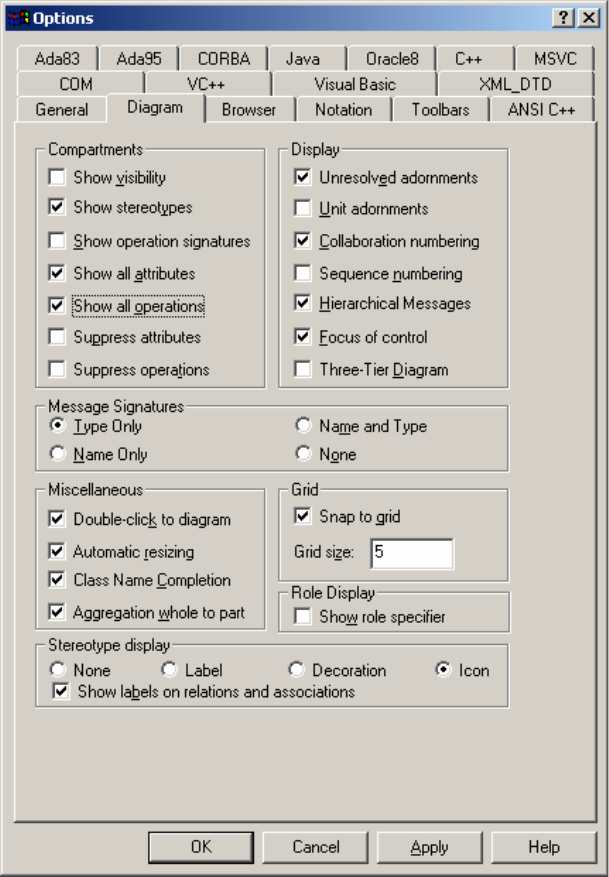 browser. Configure the tabs General, Diagram, Browser, Notation and