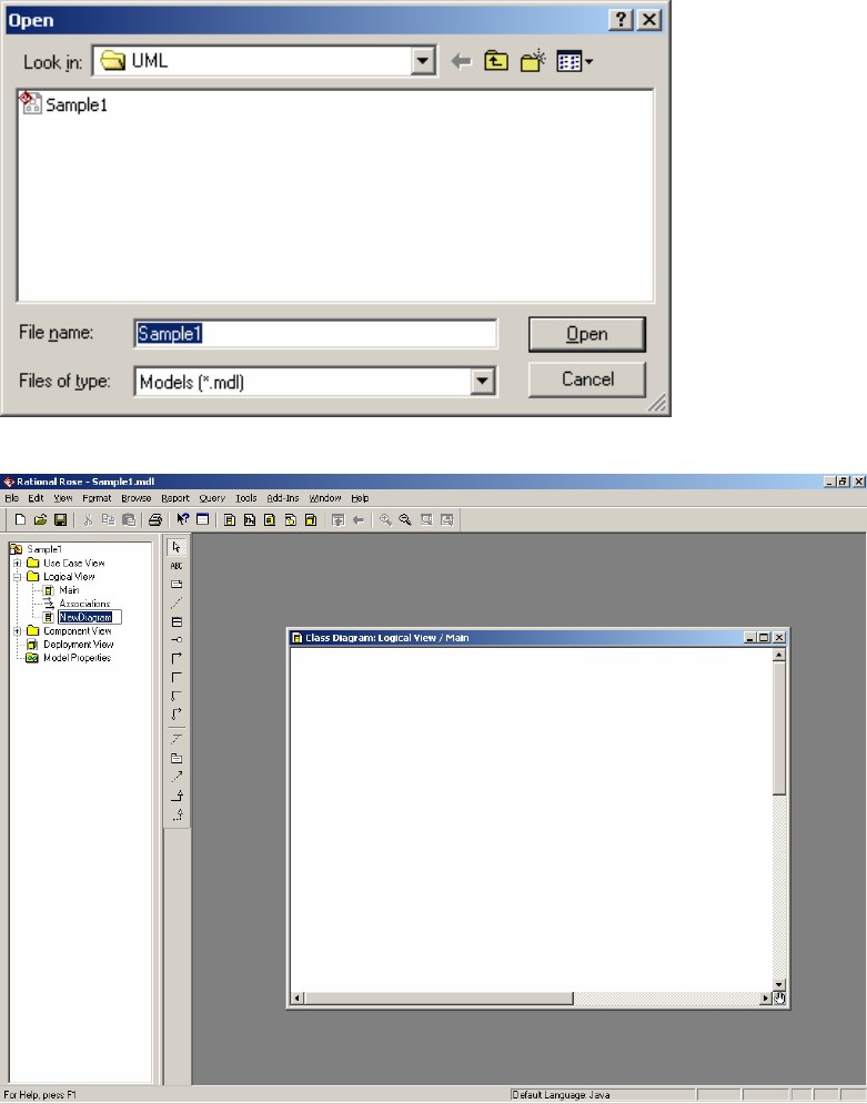 1. Open the model previously created by starting up Rational Rose Enterprise