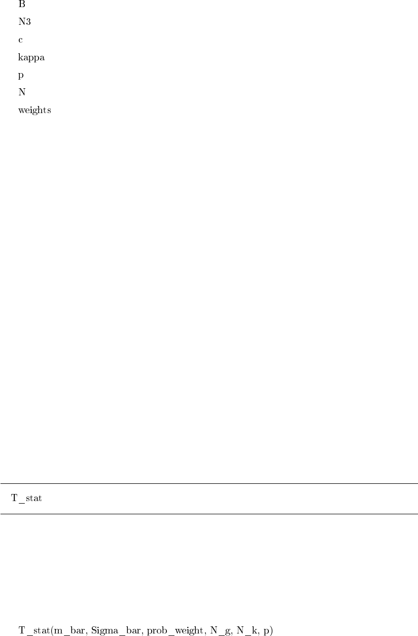 - a matrix with the weights that enter the statistic T