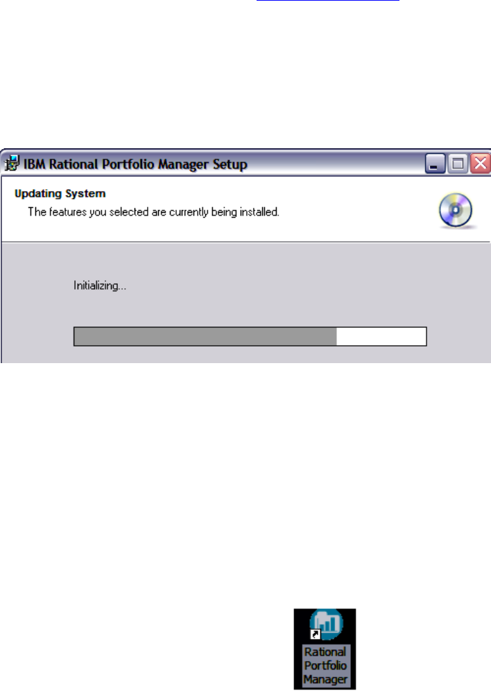 The Rational Portfolio Manager icon is added to the desktop at the conclusion of the installation process.