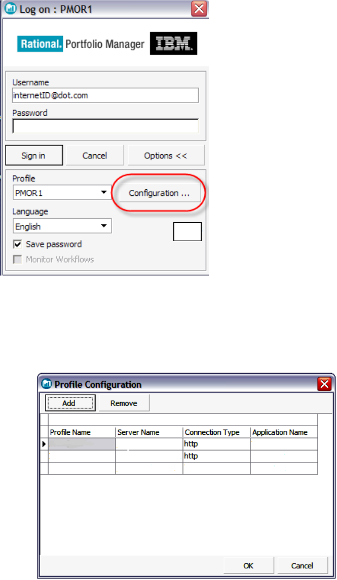 appropriate Rational Portfolio Manager Repository. Check your Welcome Letter for the configuration