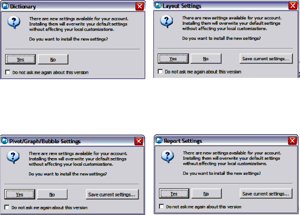 Click Yes for new Pivot/Graph/Bubble and Report settings.
