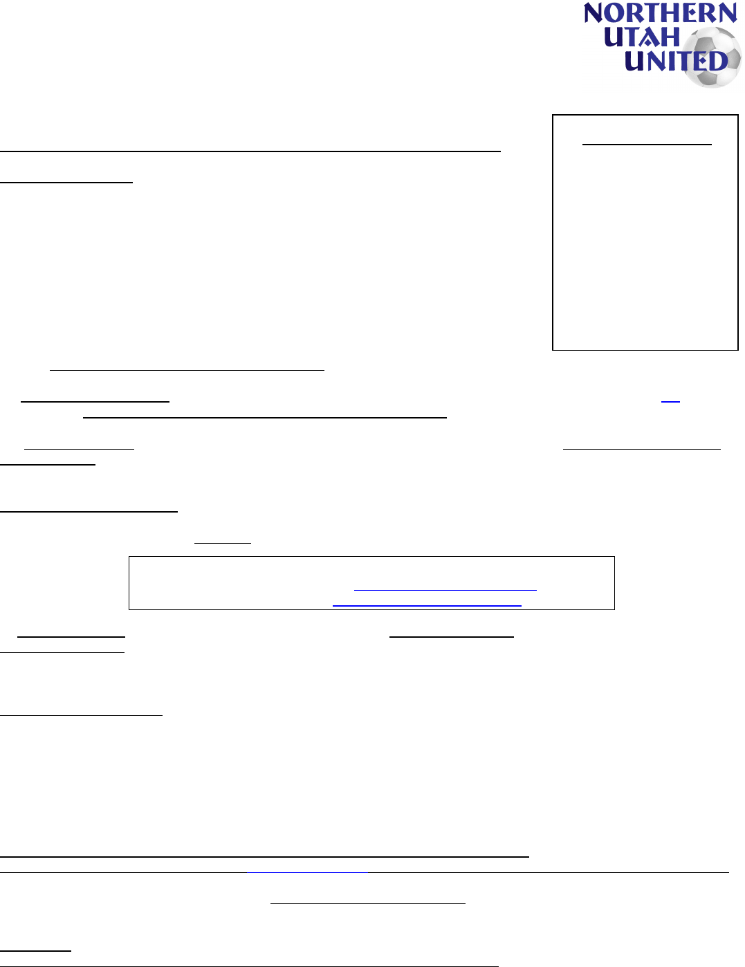 and Downloads at: http://NorthernUtahUnited.com Players that are not registered with any team will need a tournament only card,