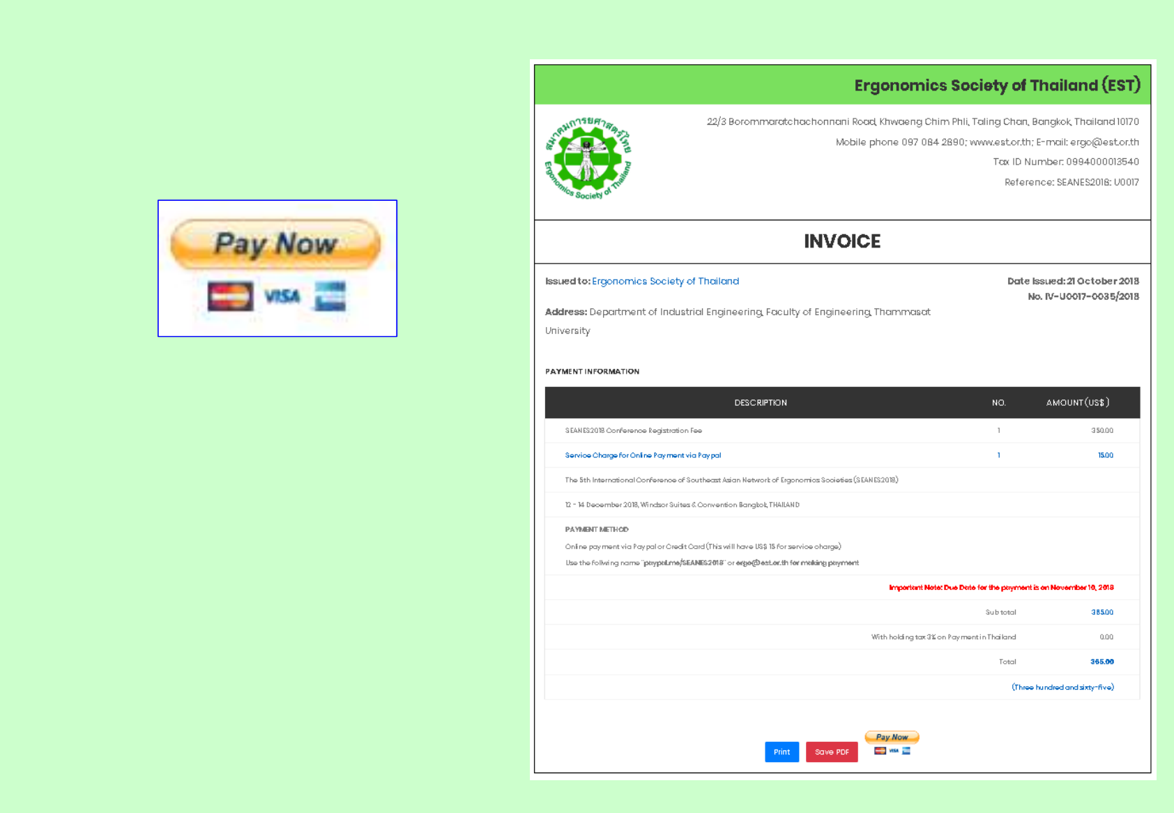 After you submit the registration form you will received an automatic email and the attached invoice.