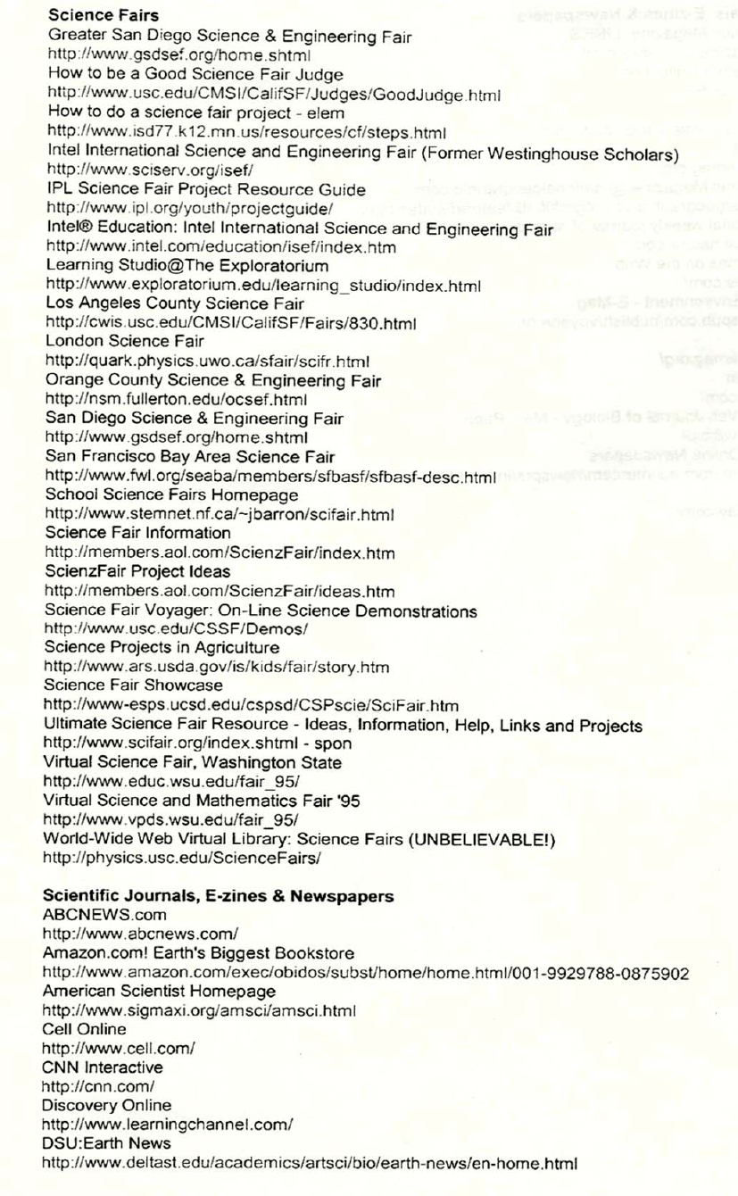 There is a lot of great information and there are ABSTRACTS from many year of the California State Science Fair.