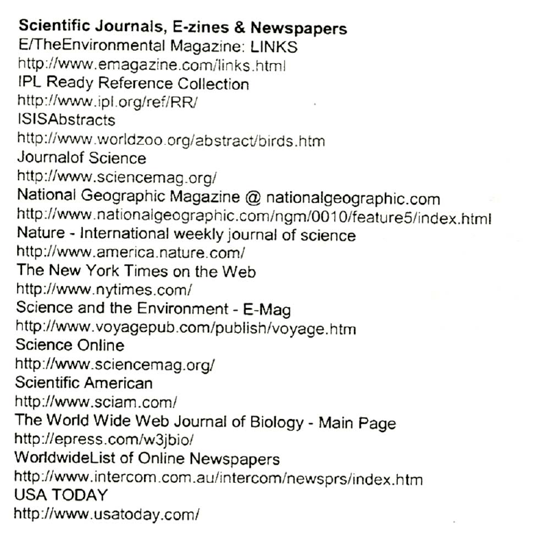Magazines – We subscribe to several science magazines. Past issues may be checked out for five school days. Browse these