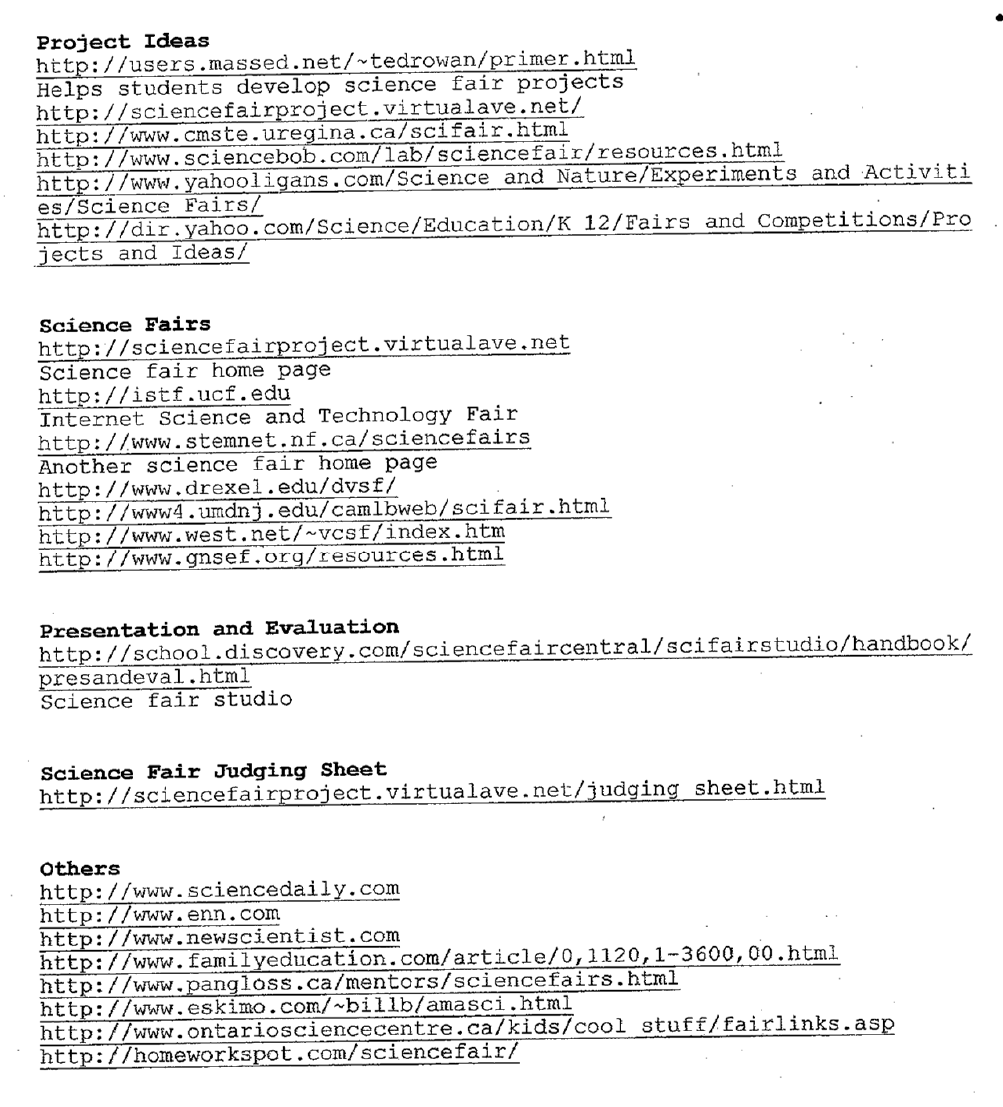 Science Fair Project Resource Guide: Ideas, instructions, resources. http://www.ipl.org/vouth/proiectguide/