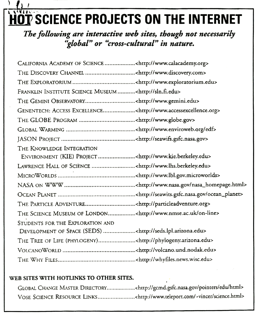 Computers: on our school home page, scroll down the left hand frame and click on SCIENCE to check out web sites listed. It