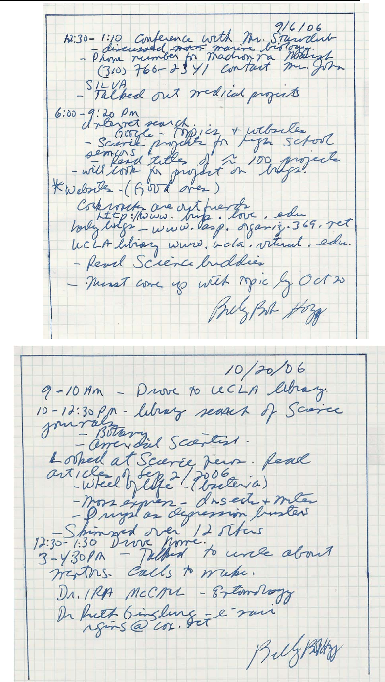 This is a project-based research course. You will be expected to develop your own original idea in science, research it,