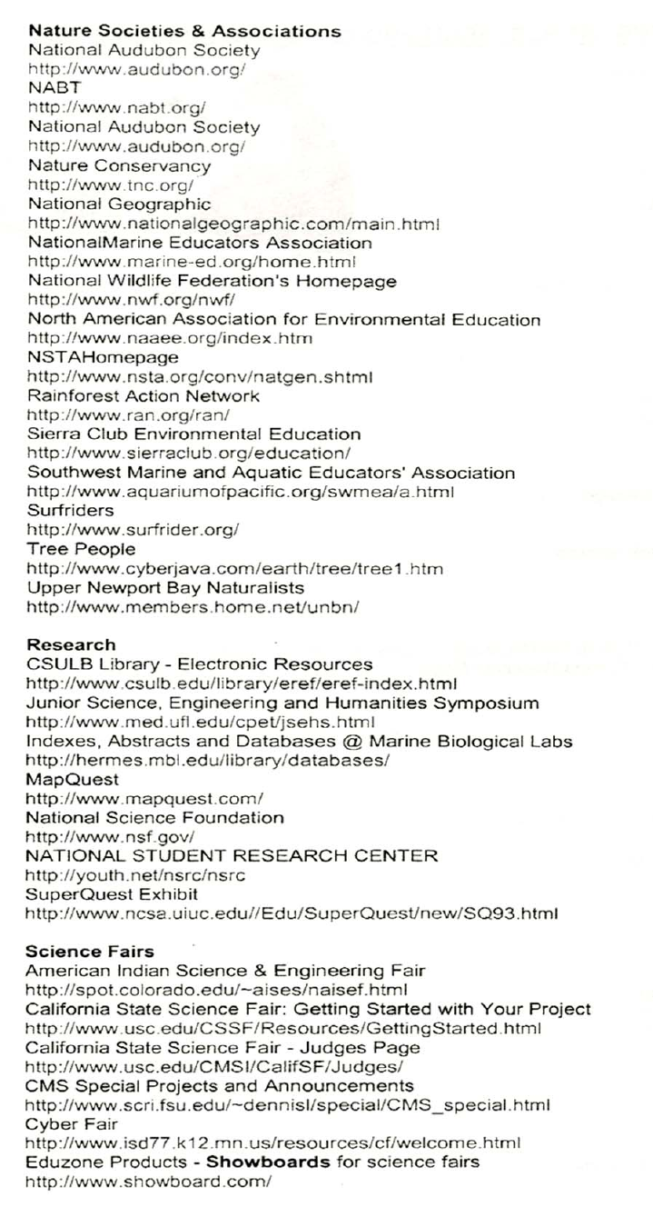 CALIFORNIA SCIENCE FAIR WEBSITE AND ABSTRACTS http://www.usc.edu/CSSF/