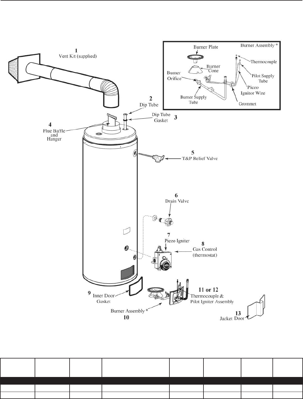 Note: Please contact the Rheem National Customer Service Center at 1-800-621-5622 for items not listed in this guide.