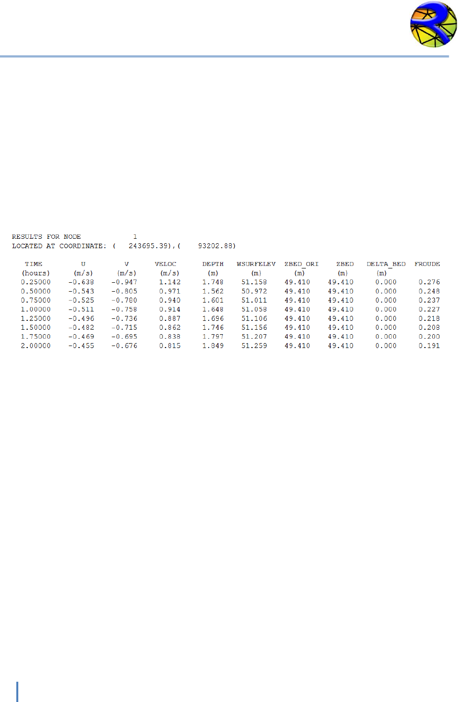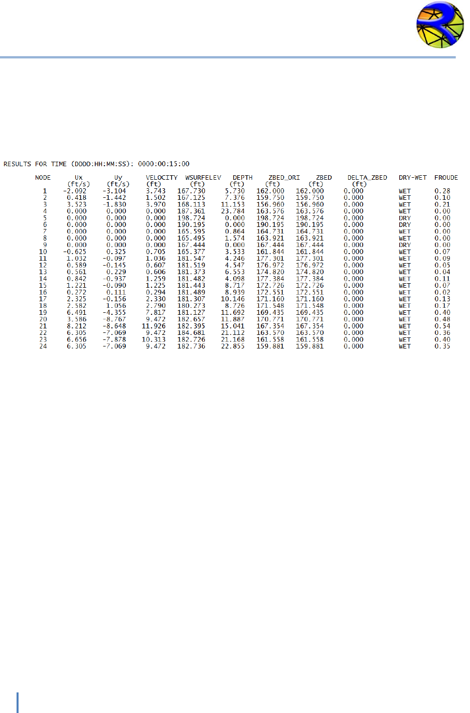 These files report the output time interval nodal velocities, depths, water surface and bed