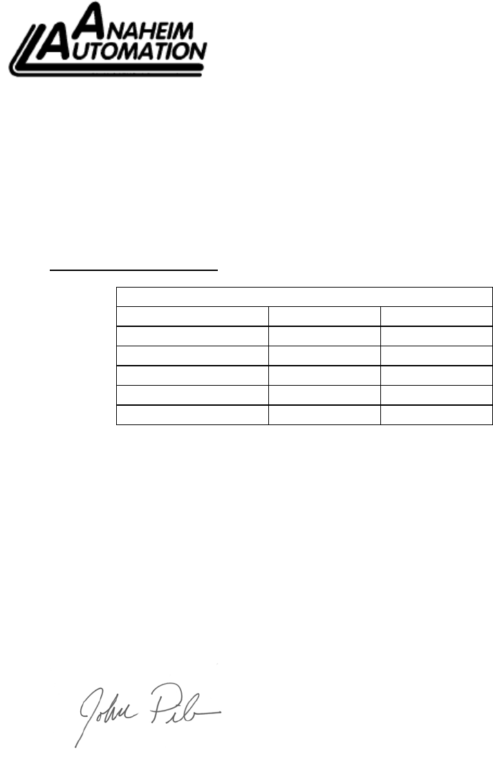 Anaheim Automation certifies that our products listed below, identified by the part number suffixes listed