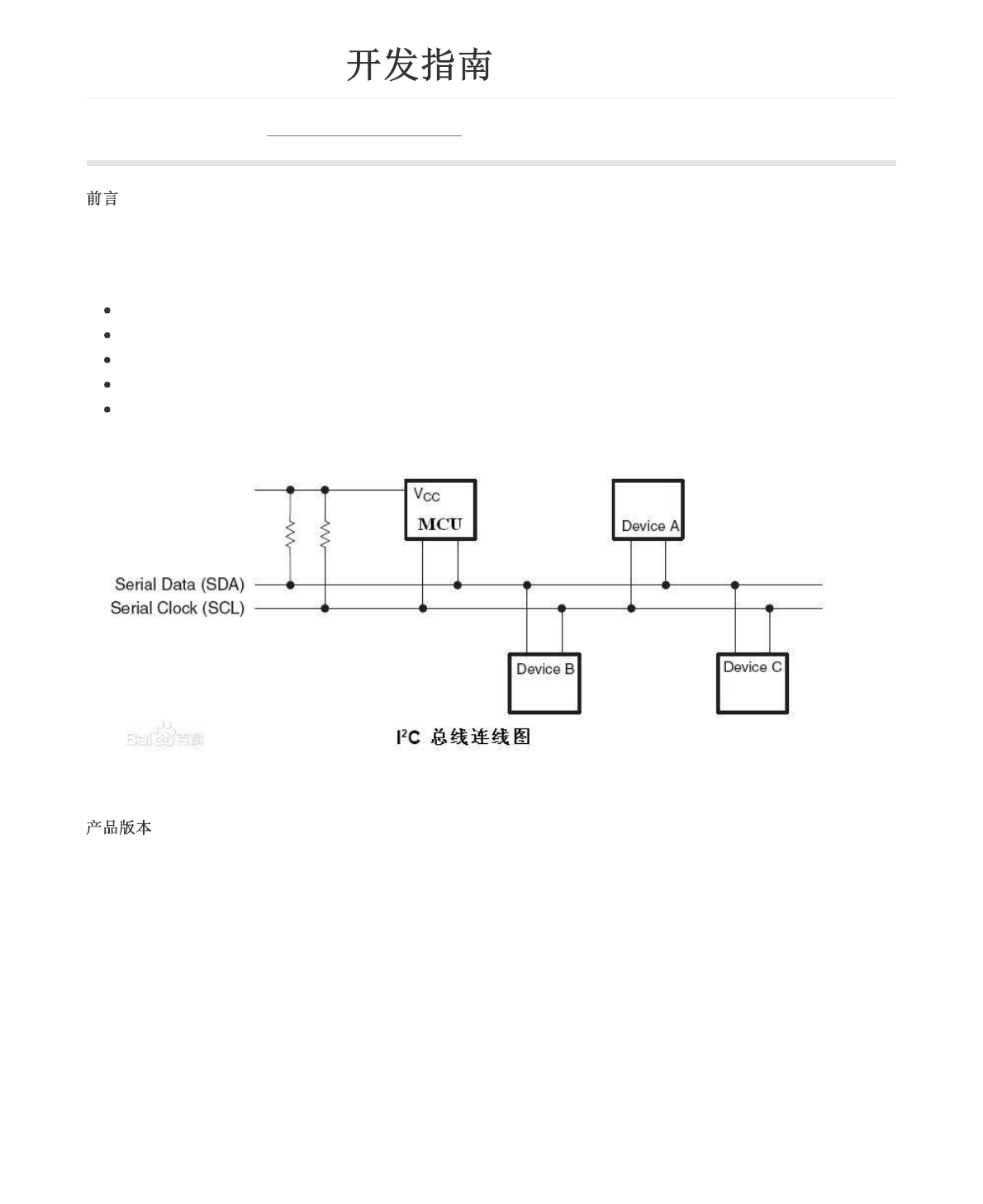 下图为I2C总线的硬件连接方式,需要上拉电阻,改变上拉电阻大小可调节I2C总线的上拉强度。