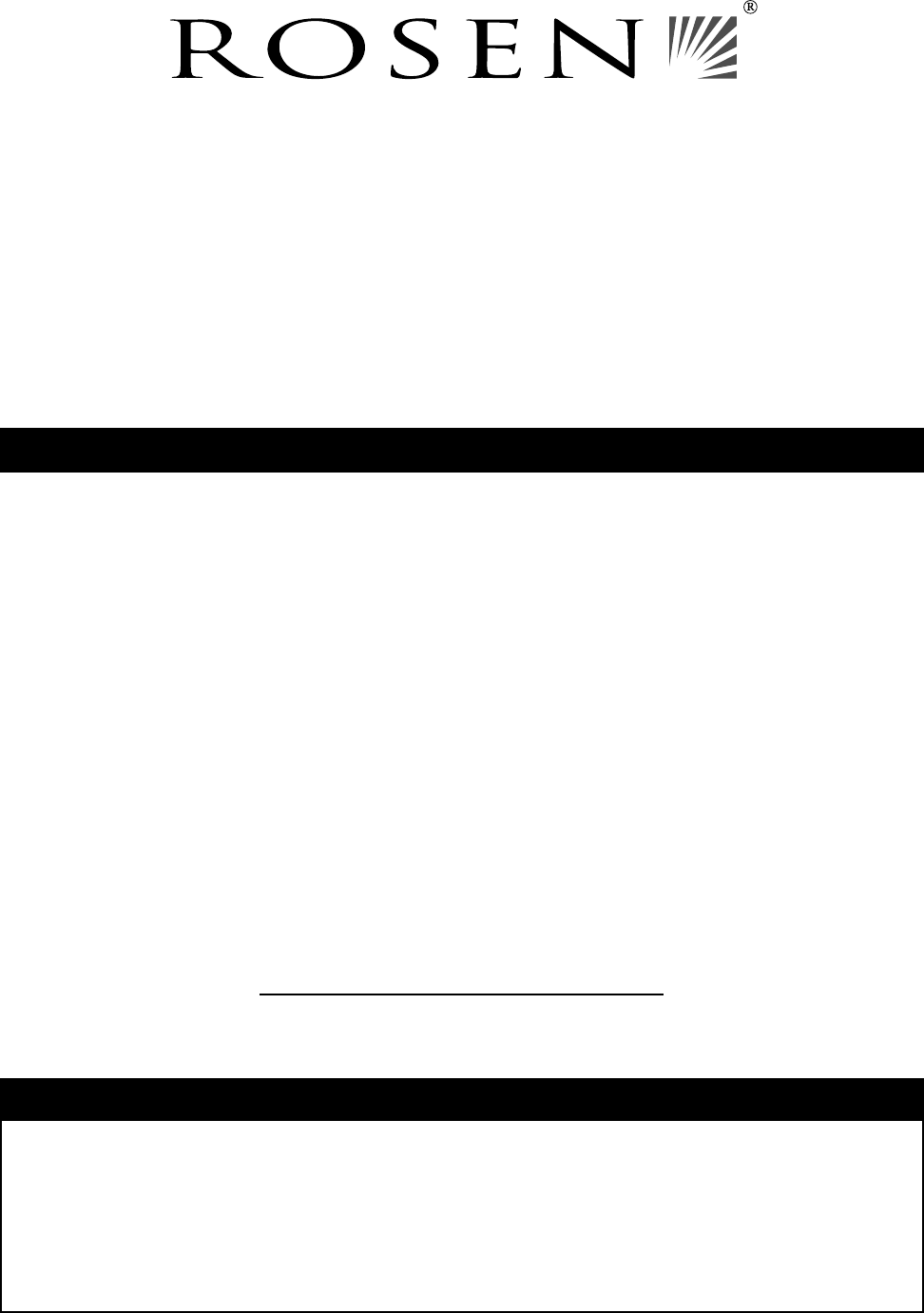 ROSEN ENTERTAINMENT SYSTEMS OVERHEAD VIDEO PRODUCTS ARE NOT INTENDED FOR