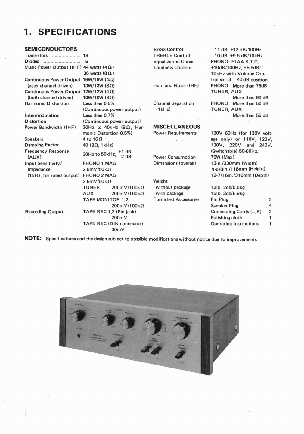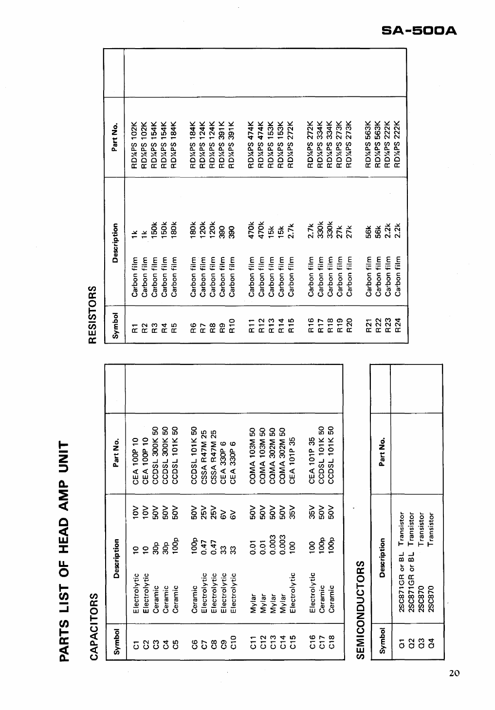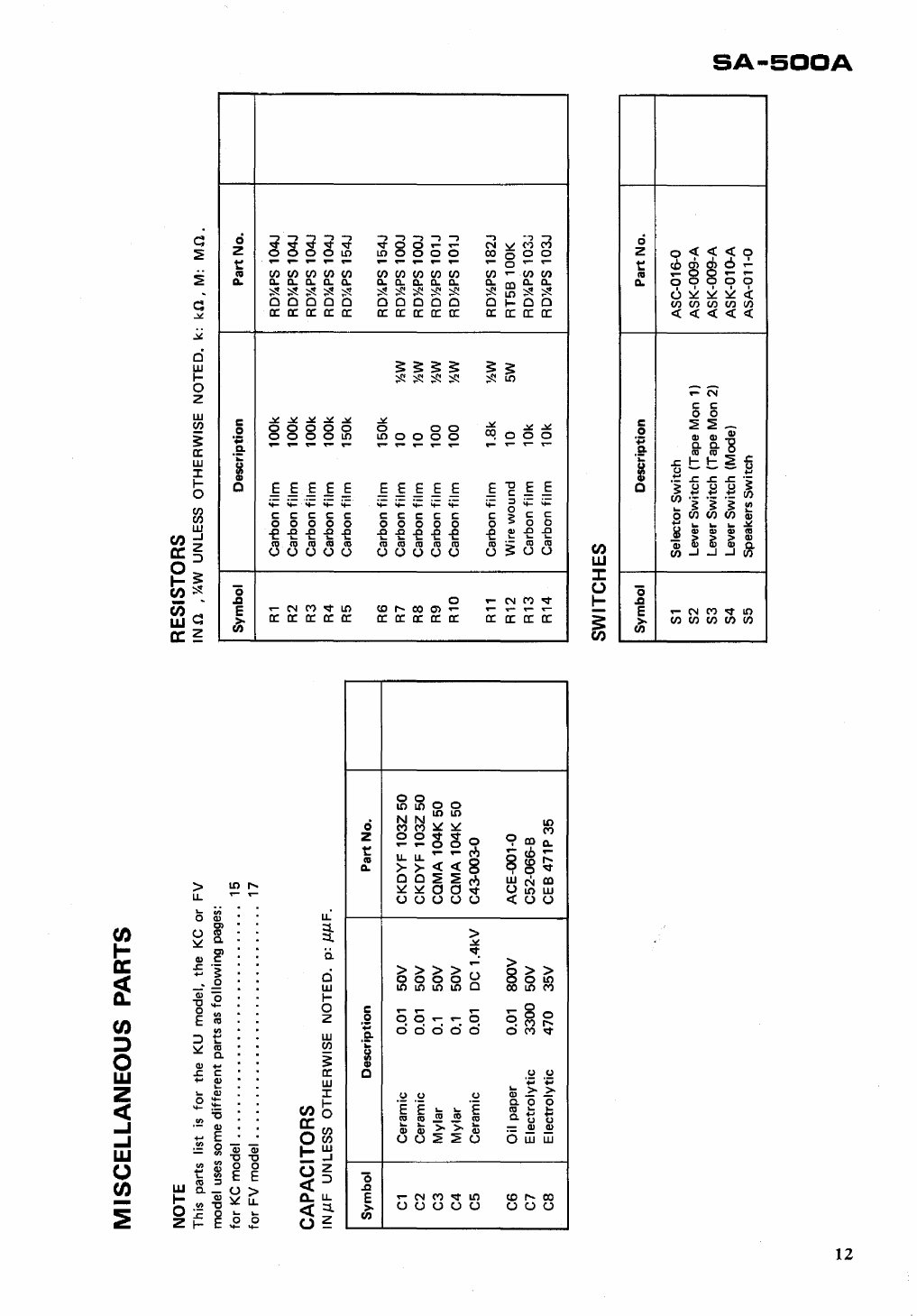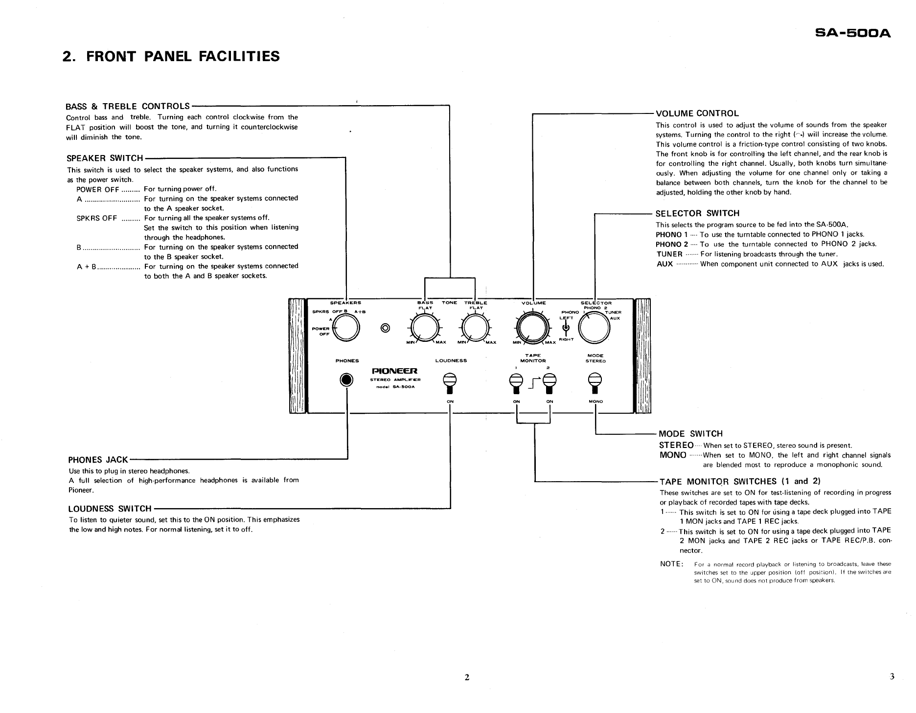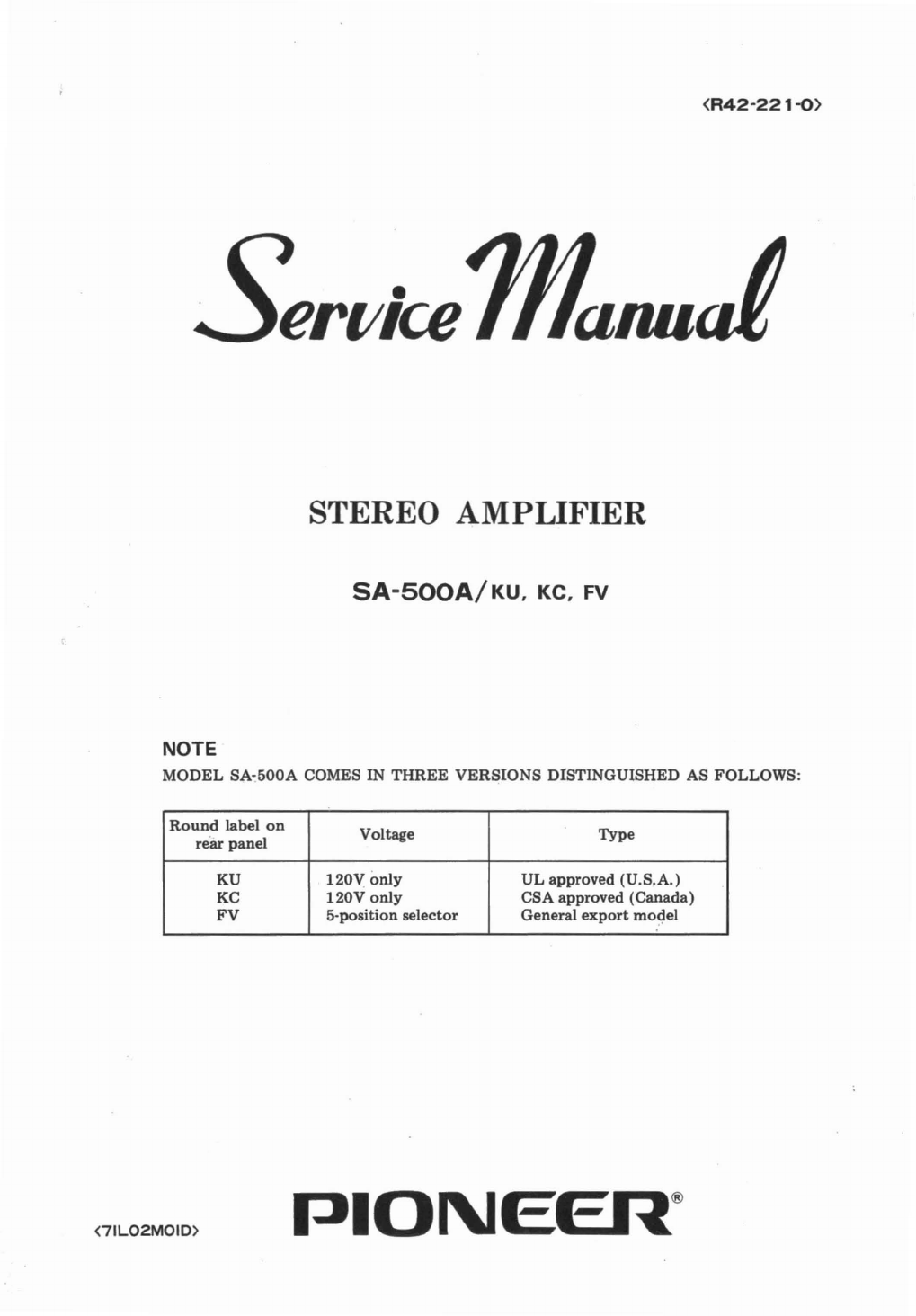 Pioneer SA 500A Integrated Amplifier Service Manual (7 X 10) SA500A