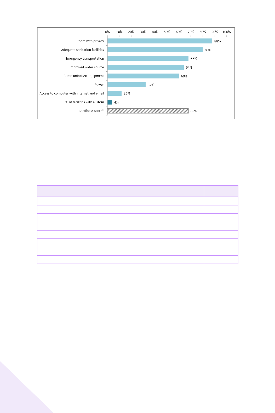 Staff and training Equipment Diagnostics Medicines and commodities Readiness score