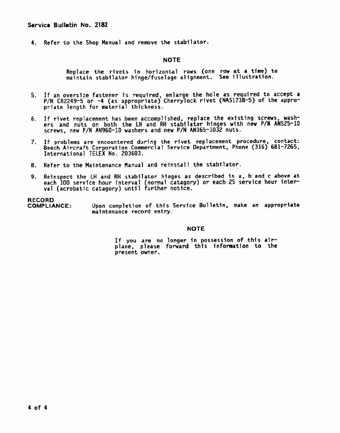 U~on corn~letion of this Service Bulletin, make an