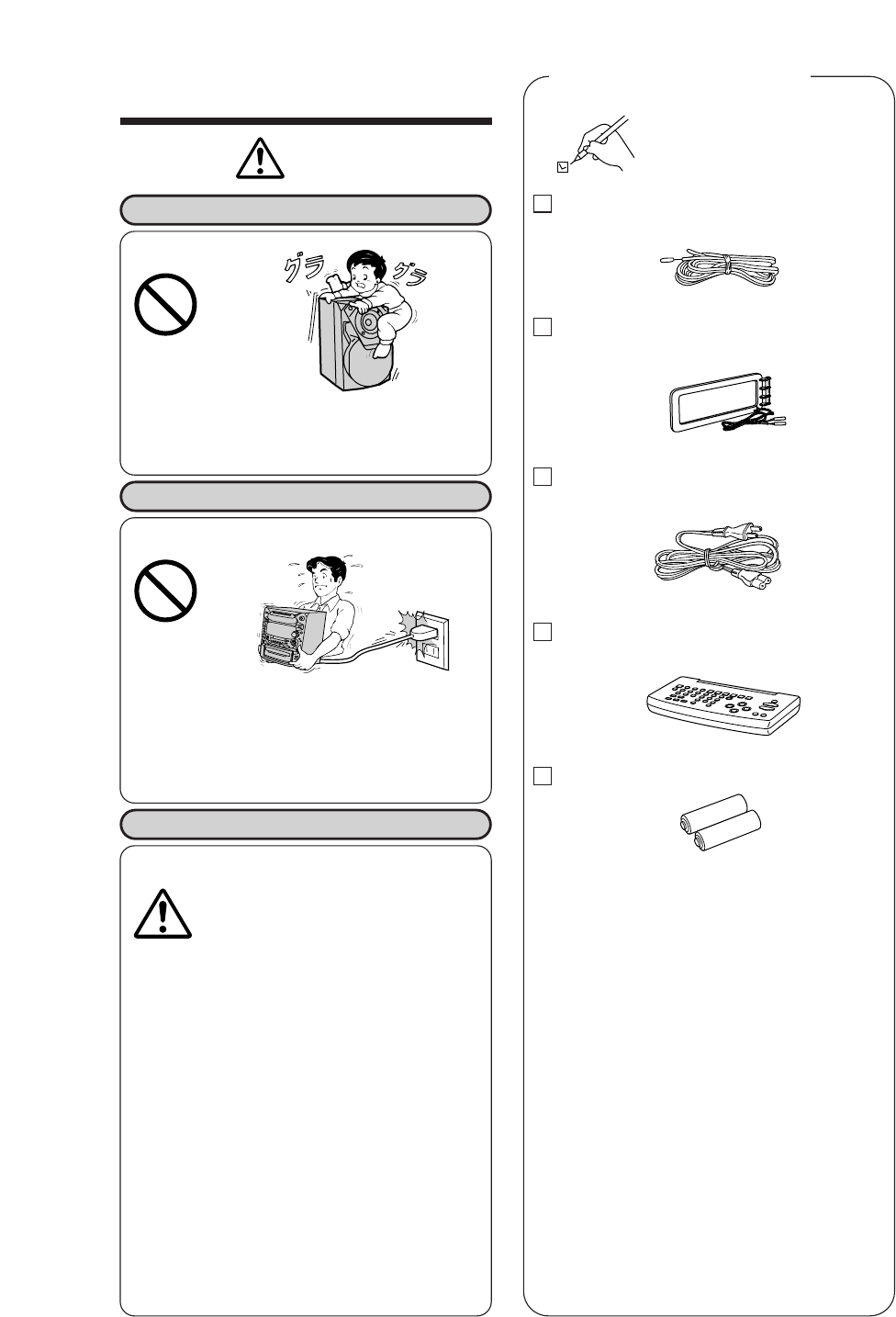 お使いになる人や他の人への危害、財産への損害を未然に防止するため、必ずお守りいただく