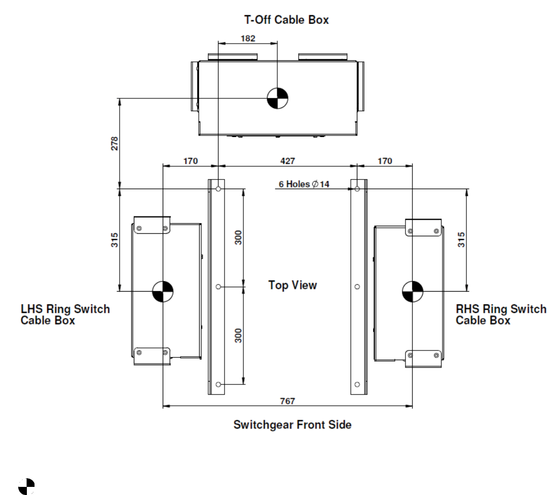 17 Phase to phase center distance (Ring Switch Side) 100 mm