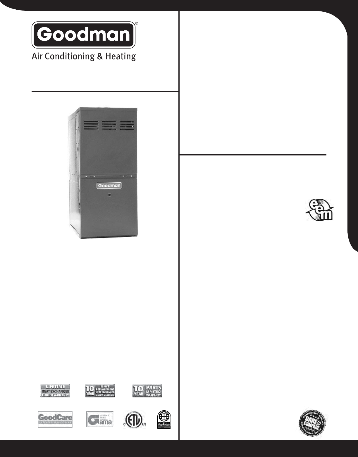 Goodman Manufacturing Company, L.P., reserves the right to discontinue, or change at any time, specifi cations or designs without notice
