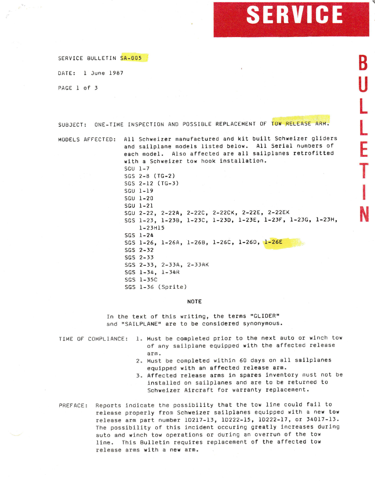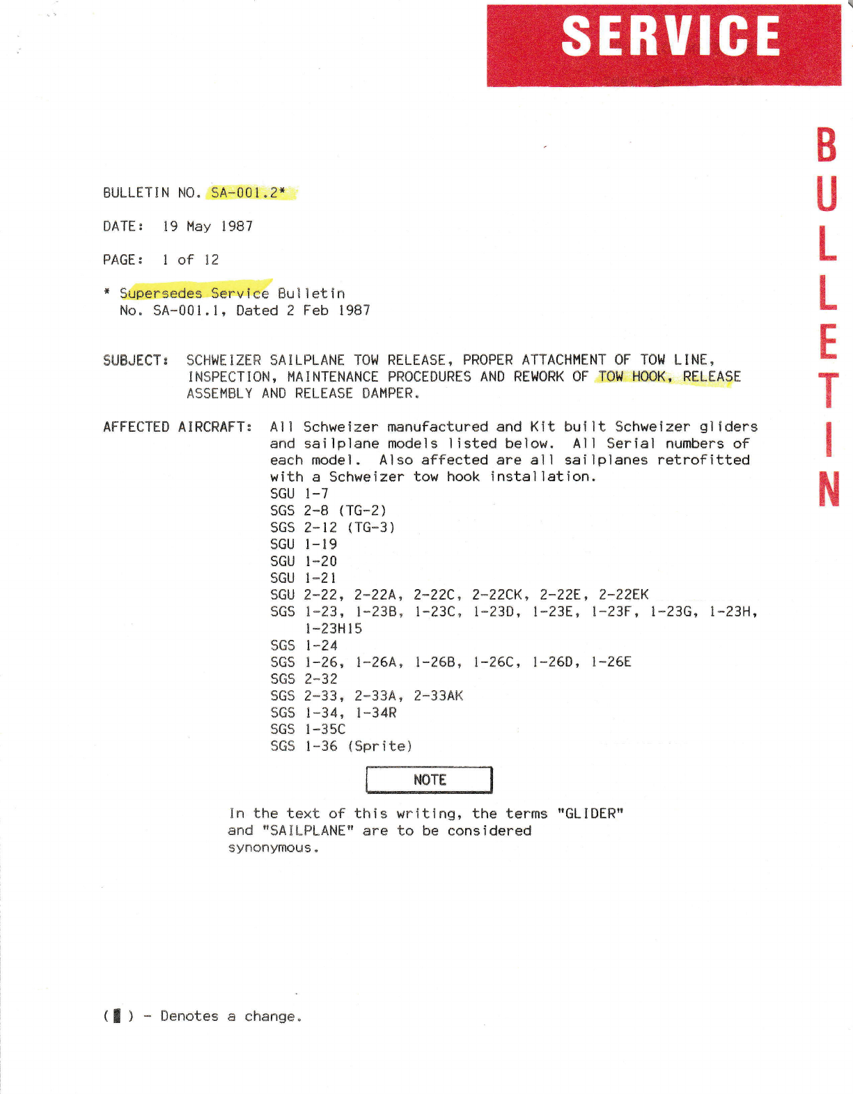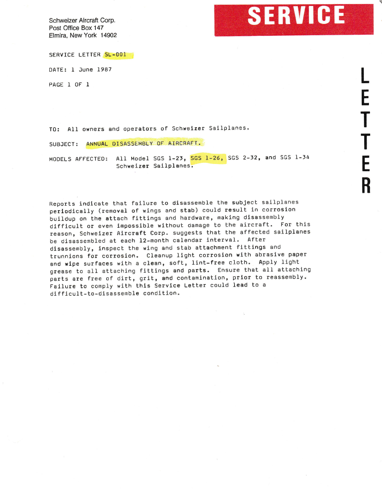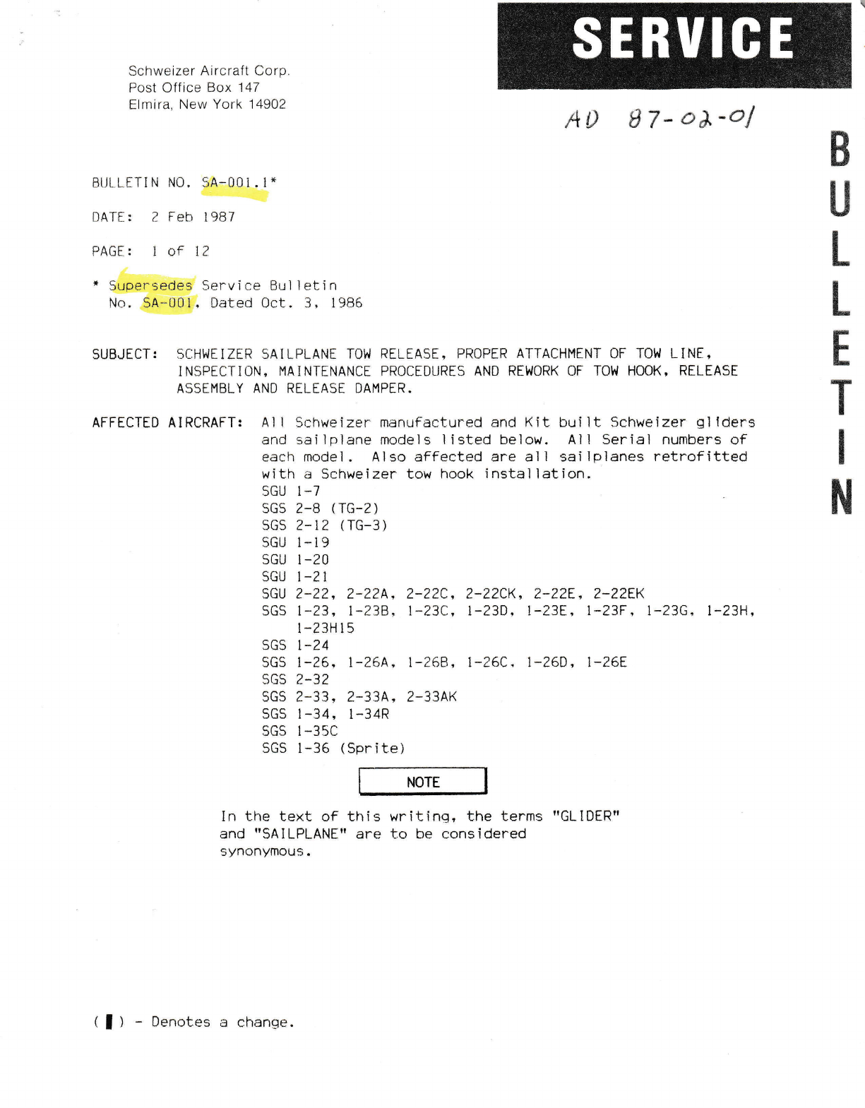 failureo ?]re change ls belng lncorporated, ln new productlon t-25 sallplanes.